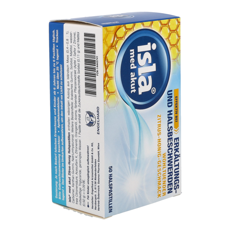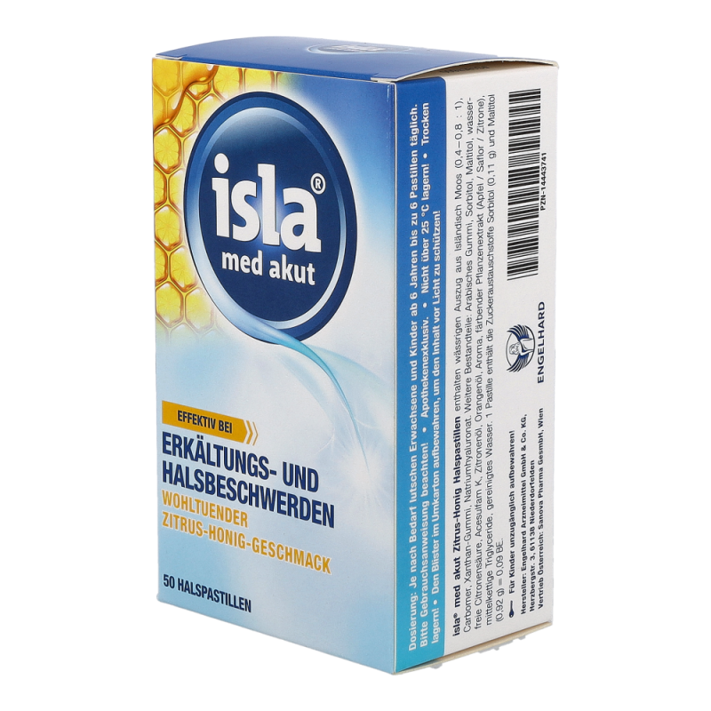isla med Zitrus-Honig Pastillen dienen der Akutanwendung bei erkältungsbedingten Hals- und Stimmbeschwerden. Zitrus Honig Geschmack sorgt für ein wohltuend, erfrischendes Erlebnis auf der Zunge – profitieren Sie von hohen Rabatten und dem großen Sortiment einer Standortapotheke!