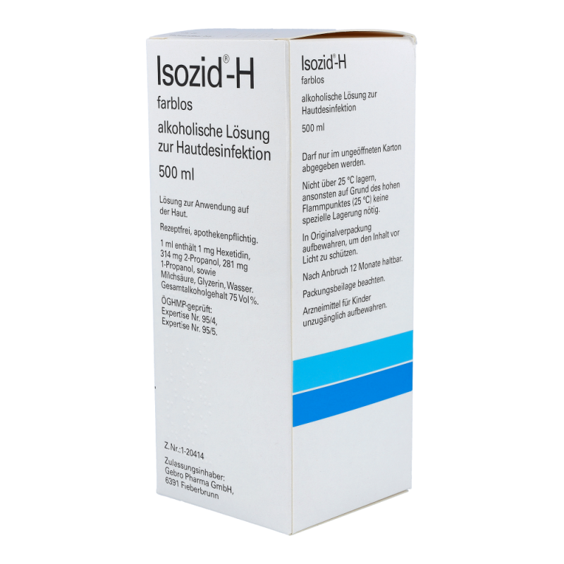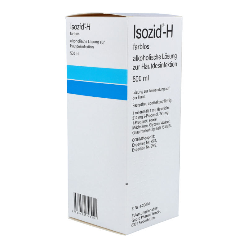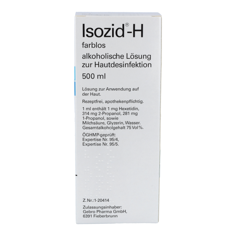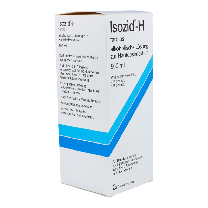 Isozid-H farblos wird zur Desinfektion der Haut vor Injektionen, Impfungen, Inzisionen, Punktionen und Operationen eingesetzt, sofern nicht zur Markierung Isozid-H gefärbt vorgezogen wird. Der Wirkungsbereich von Isozid-H erstreckt sich auf die wichtigsten pathogenen Mikroorganismen.