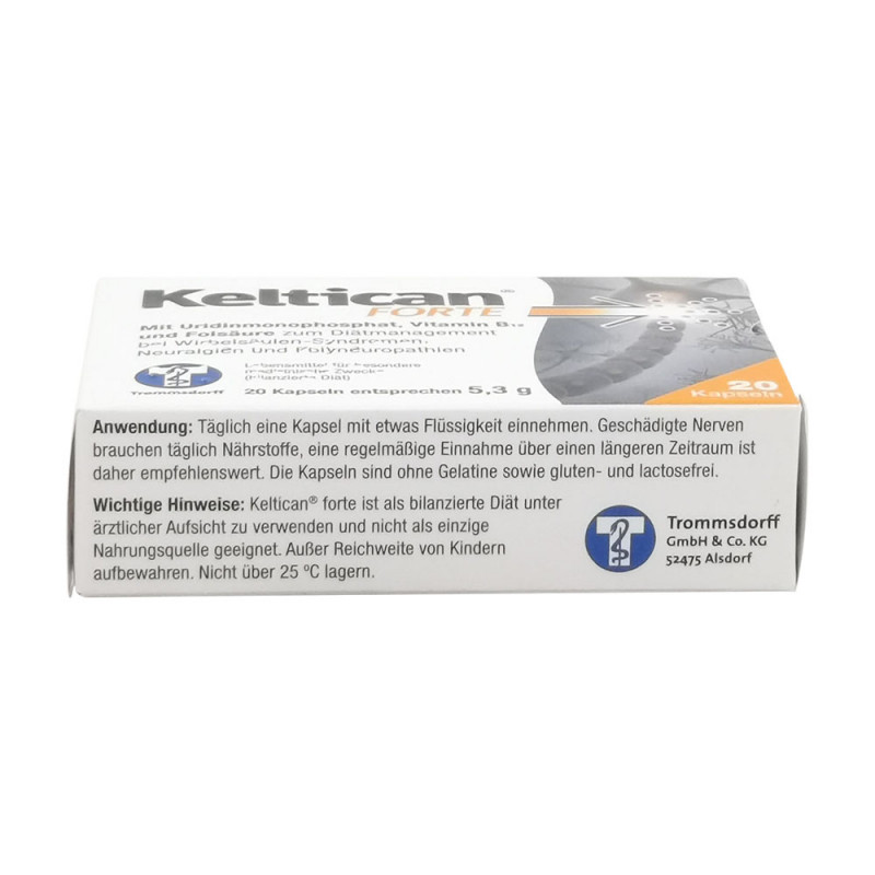 Keltican Forte Kapseln sind zur diätetischen Behandlung von Wirbelsäulen-Syndromen, Neuralgien und Polyneuropathien bestimmt. Uridinmonophosphat, Vitamin B12 und Folsäure tragen zur Aktivierung körpereigener Reparaturvorgänge geschädigter Nerven bei -jetzt alle Produkte von Gall Pharma bestellen!