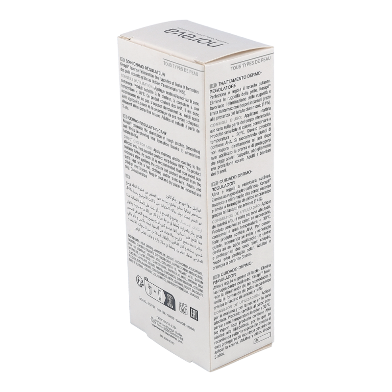 Kerapil Emulsion glättet Reibeisenhaut und macht sie geschmeidig. Ammoniumlactat hemmt die übermäßige Haftung der Hornzellen auf der Haut und regt den Hautstoffwechsel an, wodurch bei regelmäßiger Verwendung die natürliche Wassserbindungsfähigkeit der Haut und damit der Wassergehalt der Haut nachhaltig steigt.