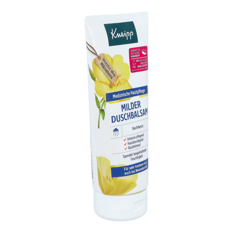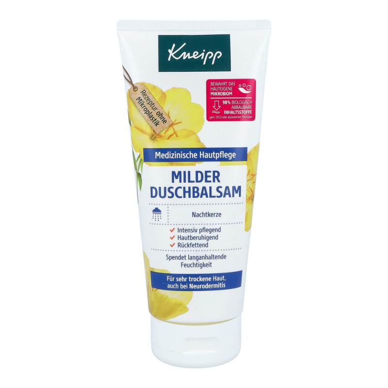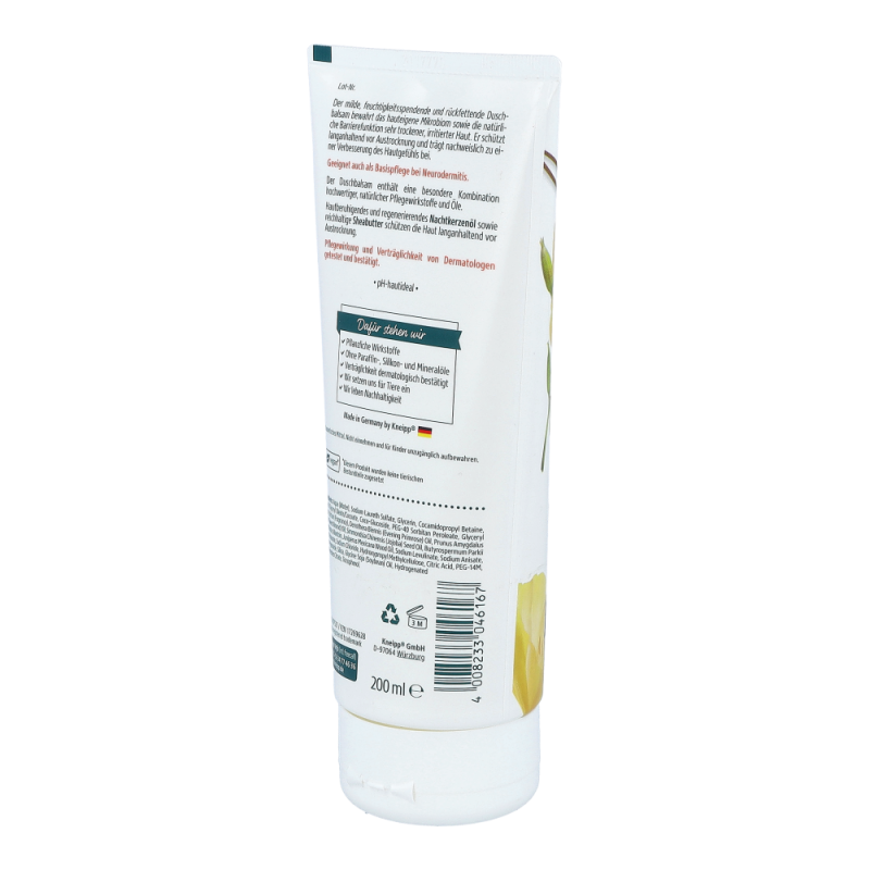 Der milde, feuchtigkeitsspendende und rückfettende Duschbalsam ist die ideale Pflege für sehr trockene Haut bis hin zu Neurodermitis. Er bewahrt die natürliche Barrierefunktion der Haut, schützt langanhaltend vor Austrocknung und trägt zu einer Verbesserung des Hautgefühls bei.