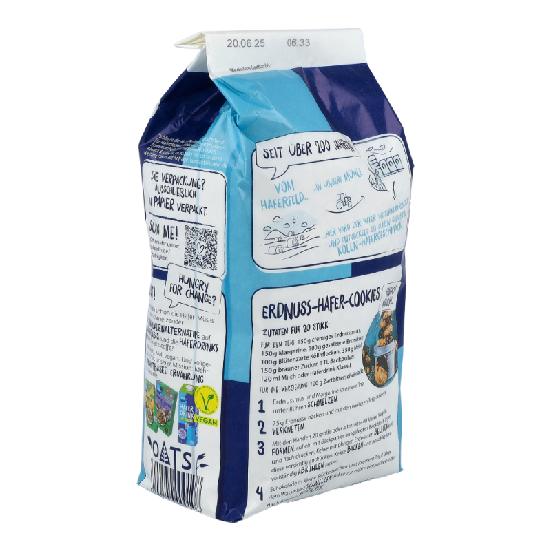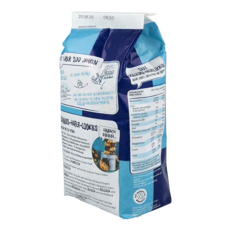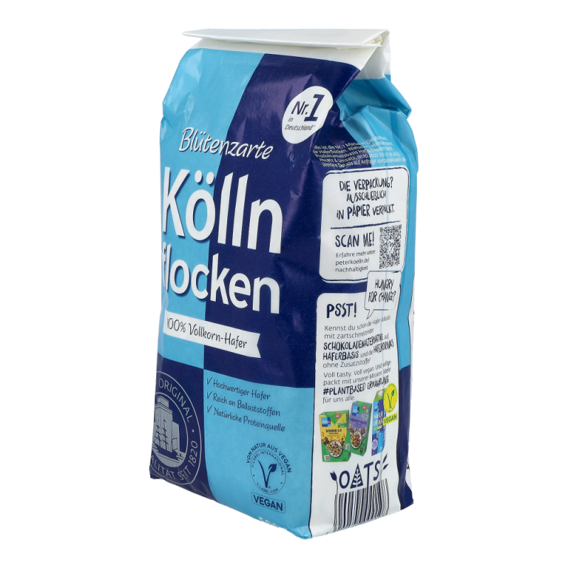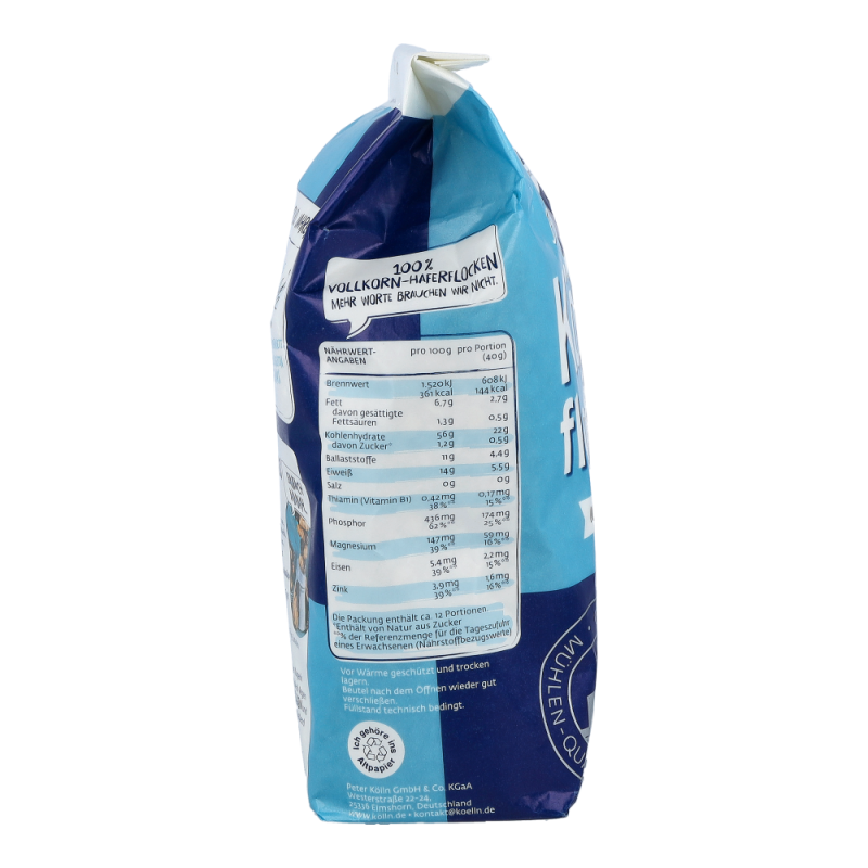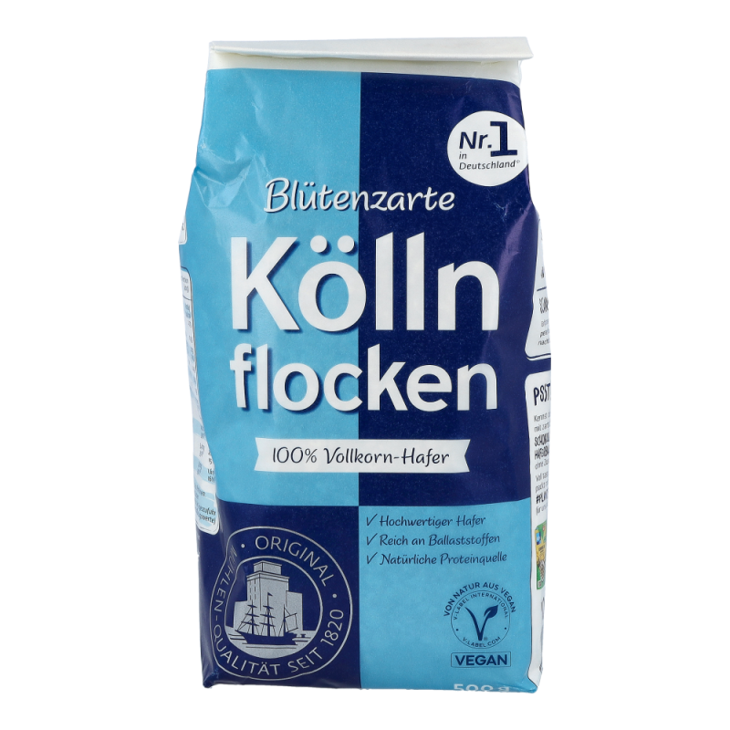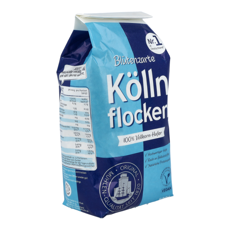Köllnflocken Blütenzart sind besonders feine Hafer-Vollkornflocken, die aus geschnittenen Haferkernen, der Hafergrütze, gewalzt werden. Köllnflocken sind vielseitig in der Küche einsetzbar..