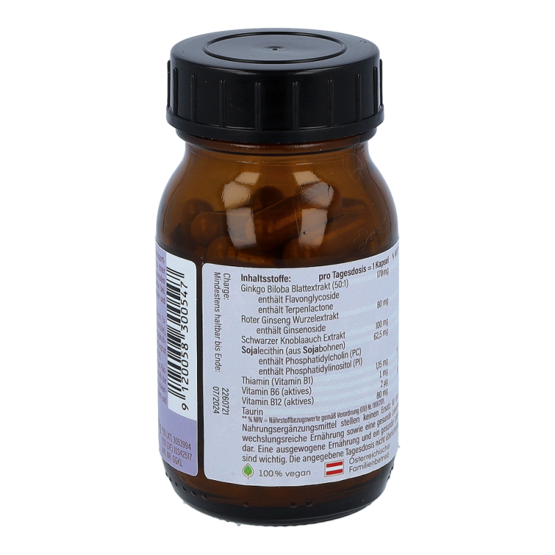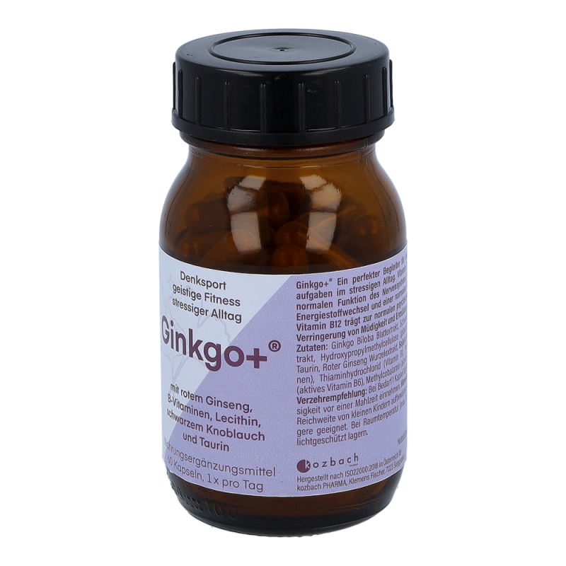 Kozbach® Ginkgo Ginseng-Lecithin Kapseln helfen bei der Erhaltung der Gehirnleistung, bei der Aufrechterhaltung der geistigen Aktivität und leisten einen Beitrag zur Steigerung der allgemeinen Vitalität.
