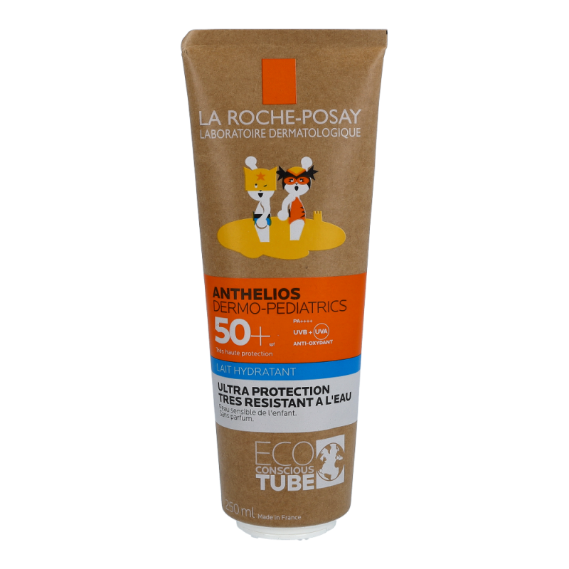 La Roche-Posay Anthelios Dermo-Kids Milch LSF 50+ 250 ml bietet sehr hohen Breitbandschutz bei UVA- und UVB-Strahlung für Kinderhaut. Transparent. Sehr wasserfest. An die sensible Haut von Kindern angepasst.