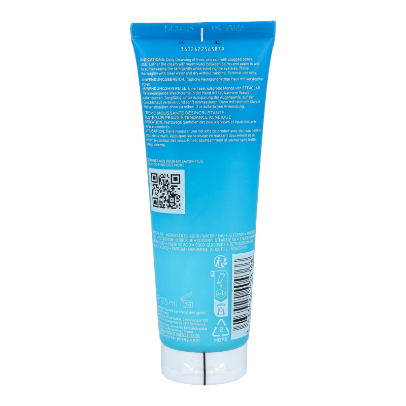 La Roche-Posay Effaclar Tiefenreinigende Waschcreme 125 ml sorgt für eine porentiefe Gesichtsreinigung bei fettiger bis sehr fettiger und zu Unreinheiten neigender Haut. Zudem kann das porentief reinigende Waschgel bei einem groben Hautbild sowie bei starken Verhornungen, Hautablagerungen und ausgeprägtem Fettglanz im Gesicht verwendet werden.