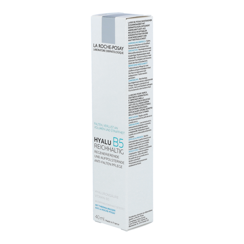 Die La Roche-Posay Hyalu B5 reichhaltige Pflegecreme ist eine intensiv beruhigende Anti-Falten-Creme, die der Haut langanhaltende Feuchtigkeit schenkt. Die Pflege polstert die Haut spürbar auf, verbessert ihre natürliche Spannkraft und ist auch für empfindliche Haut geeignet.