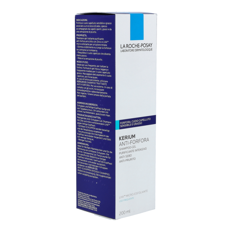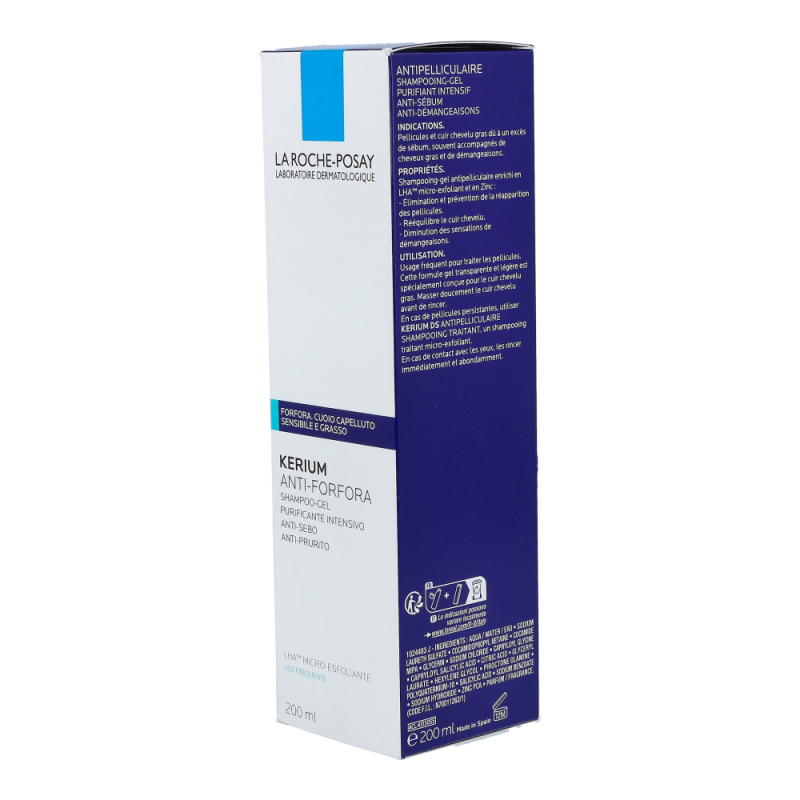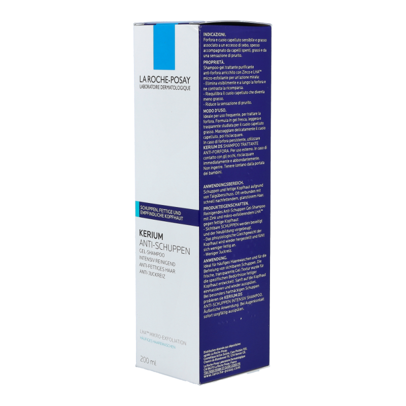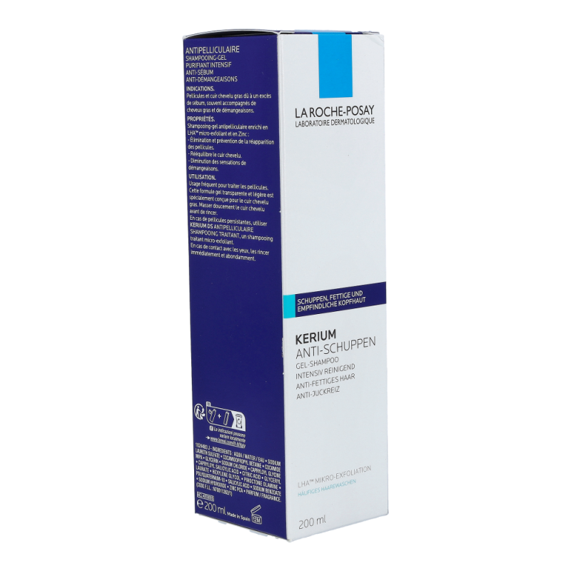 La Roche-Posay Shampoo Kerium Gel beseitigt sichtbare fettige Schuppen schnell. Das Gel mit hautberuhigendem Thermalwasser aus La Roche-Posay garantiert präzise und rasche Beseitigung von Schuppen dank mikro-exfolierender LHA Wirkung. Es stellt das physiologische Gleichgewicht der Kopfhaut dank eines klärenden Komplexes, der der Neubildung von Schuppen vorbeugt, her.