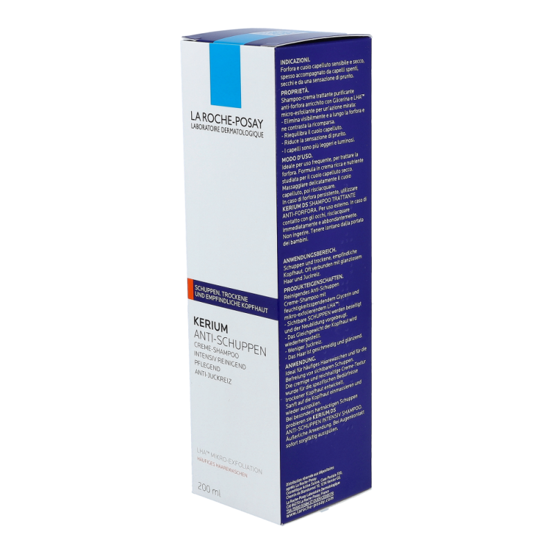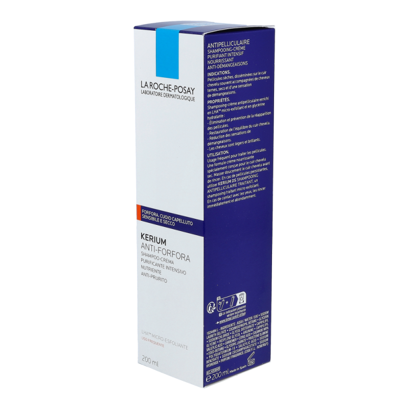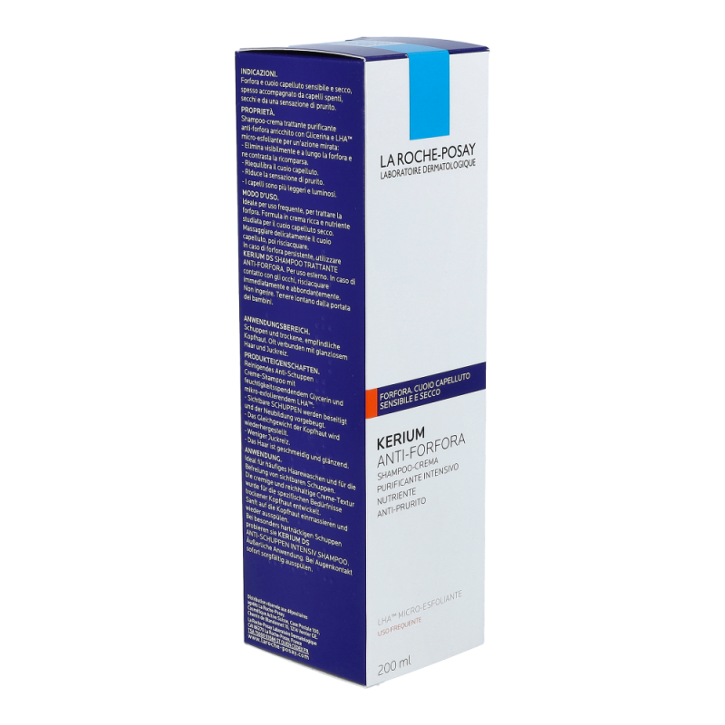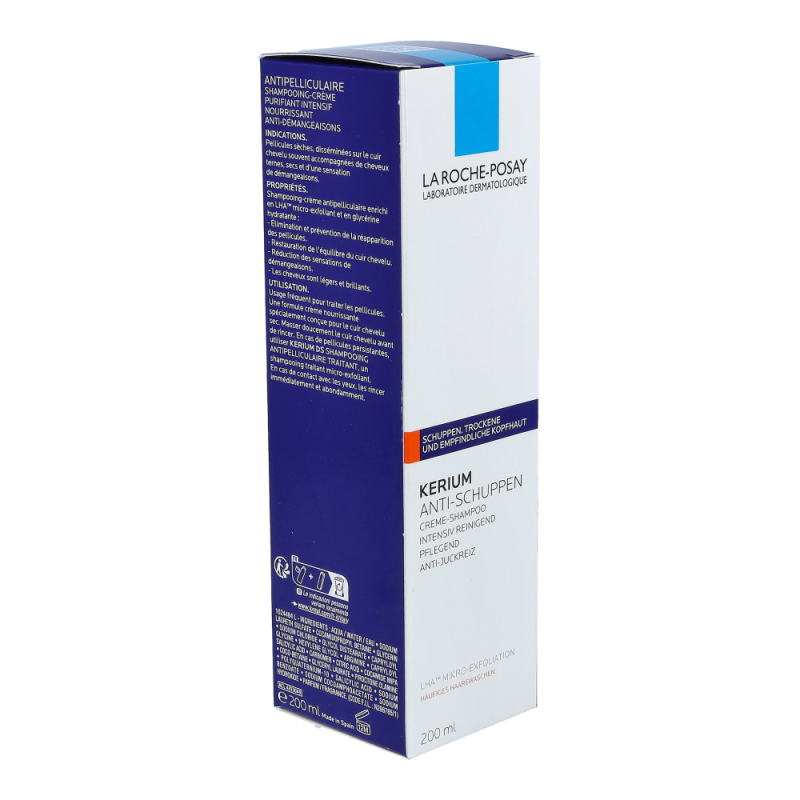 La Roche-Posay Shampoo Kerium Creme Trockene Schuppen beseitigt sichtbare, trockene Schuppen schnell. Die Pflege mit hautberuhigendem Thermalwasser aus La Roche-Posay steht für präzise und rasche Beseitigung von sichtbaren Schuppen dank mikro-exfolierender LHA-Wirkung. Sie stellt das physiologische Gleichgewicht der Kopfhaut dank eines klärenden Komplexes, der der Neubildung von Schuppen vorbeugt, her.