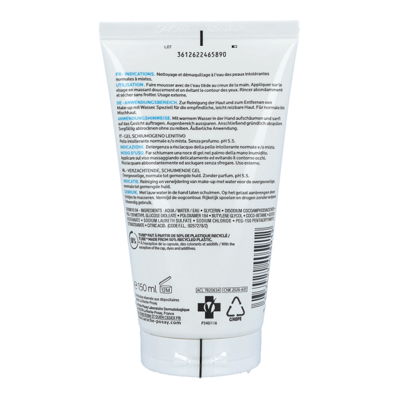 La Roche-Posay Toleriane Reinigungsgel enthält ein Minimum an hochverträglichen Inhaltsstoffen und reinigt empfindliche Haut sanft. Der sehr weiche, cremige Schaum entfernt gründlich Schmutzablagerungen und Unreinheiten. Glycerin verbessert den Feuchtigkeitsgehalt der Haut und Chelatbildner schützen empfindliche Haut vor dem Austrocknen.
