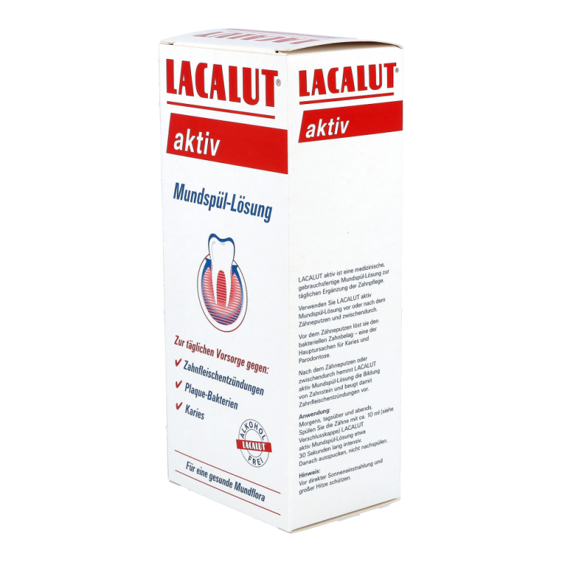 Lacalut Aktiv Mundspül-Lösung ist eine medizinische, gebrauchsfertige Mundspül-Lösung zur täglichen Ergänzung der Zahnpflege. Die Lösung eignet sich hervorragend zum Einsatz vor und nach dem Zähneputzen sowie zwischendurch.