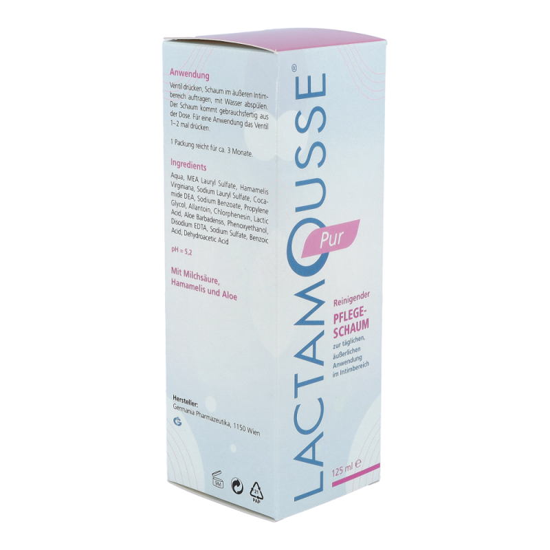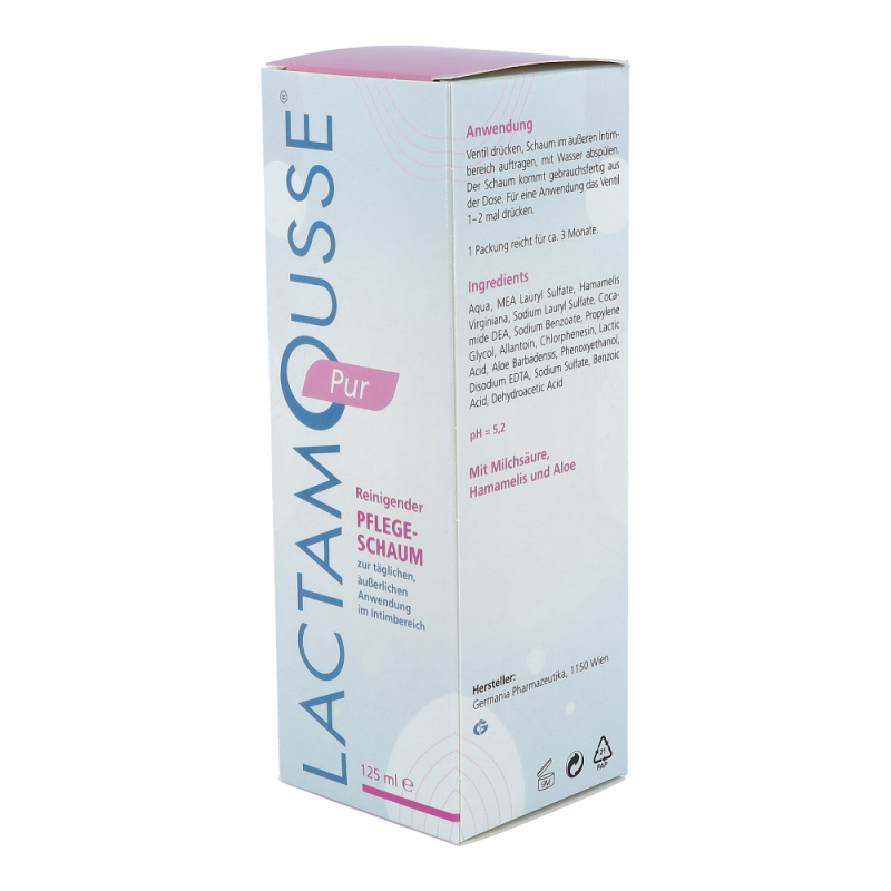 Lactamousse® reinigt und pflegt den äußeren Intimbereich und erhält das saure pH-Milieu der Scheidenumgebung. Durch Erhaltung einer gesunden Scheidenflora bietet es einen natürlichen Schutz vor Scheideninfektionen.