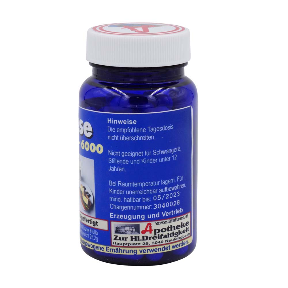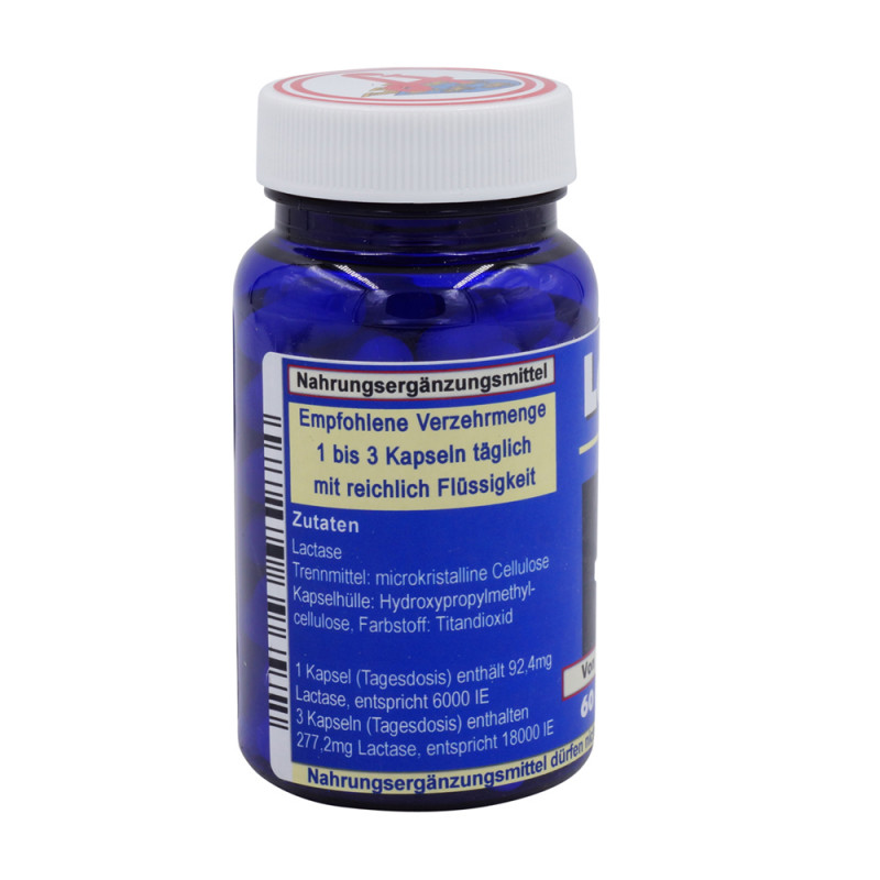 Lactase 6.000 Kapseln sind ein diätisches Lebensmittel zur besonderen Ernährung bei durch Lacatasemangel bedingter Lactoseintoleranz. Das Produkt enthält das Enzym Lactase, das Milchzucker spaltet und die Aufgabe fehlender körpereigener Lactase bei Lactasemangel übernehmen kann.
