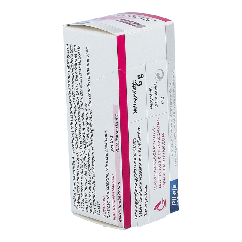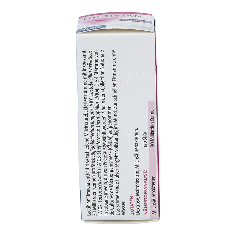 Lactibian Imedia Sticks sind ein diätetisches Lebensmittel zur Behandlung und Vorbeugung von Verdauungsstörungen, die während einer Reise in fernen Ländern plötzlich auftreten. Das Pulver zergeht in Sekundenschnelle auf der Zunge. Akute Darmbeschwerden auf einer Reise werden schnell deutlich gemildert.