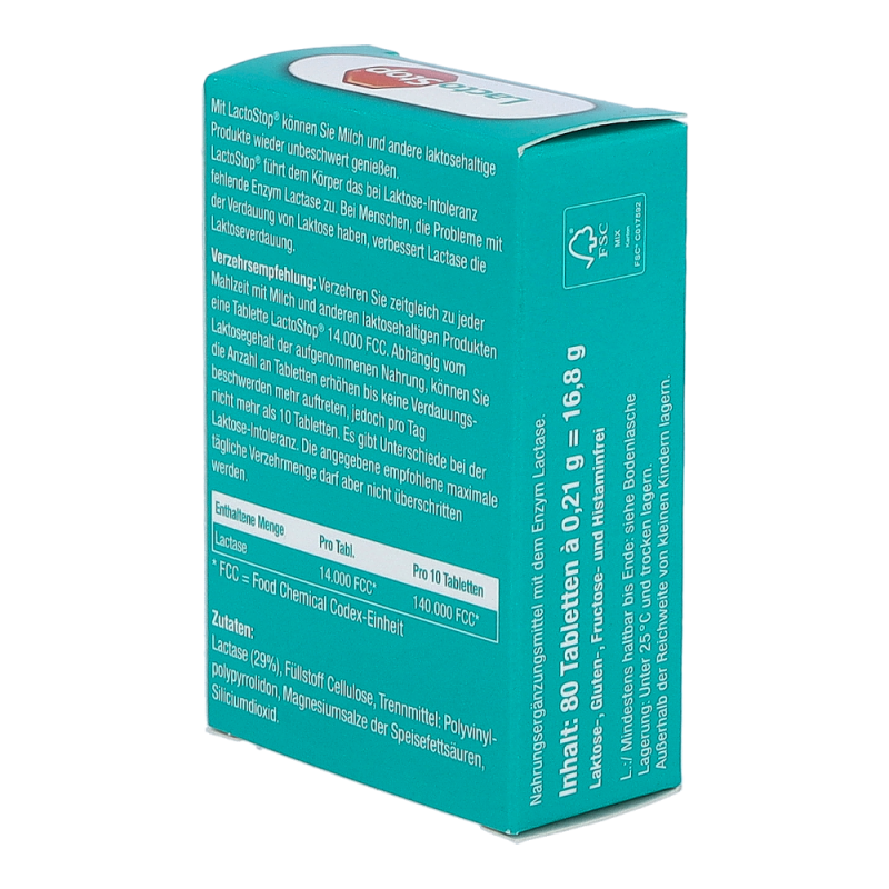 Lactostop Tabletten sind das Mittel Ihrer Wahl bei Lactoseintoleranz, da die Einnahme dieser Tabletten den Genuss von Milchprodukten ermöglicht. Die Tabletten sind für Kinder und Schwangere gleichermaßen geeignet.erhalten Sie dieses Produkt in den Varianten 3.300 Fcc (100 Stück), 5.500 Fcc (100 Stück) 14.000 Fcc (40 und 80 Stück).