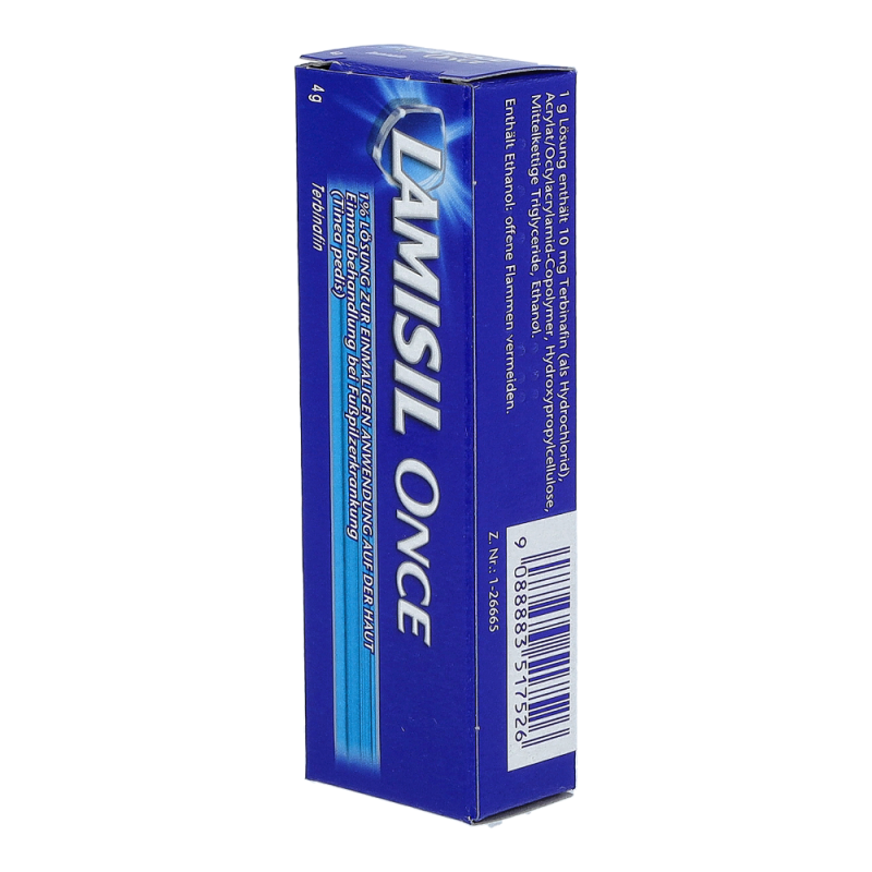Lamisil Once Lösung bildet einen weder sicht- noch fühlbaren Film auf der Haut, der den pilztötenden Wirkstoff Terbinafin nach und nach abgibt. Nach etwa 3 bis 4 Tagen verschwindet der Film, doch der Wirkstoff hat sich in der Haut angereichert und bildet dort ein Langzeitdepot. Die Lösung arbeitet nach dem Auftragen über einen Zeitraum von etwa 2 Wochen für Sie in der Haut weiter und beseitigt den Pilz zuverlässig.
