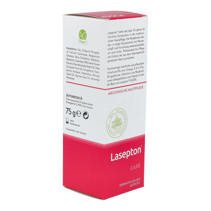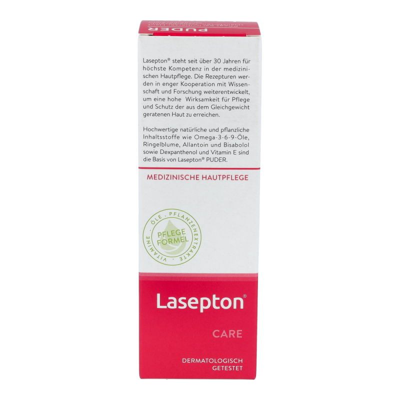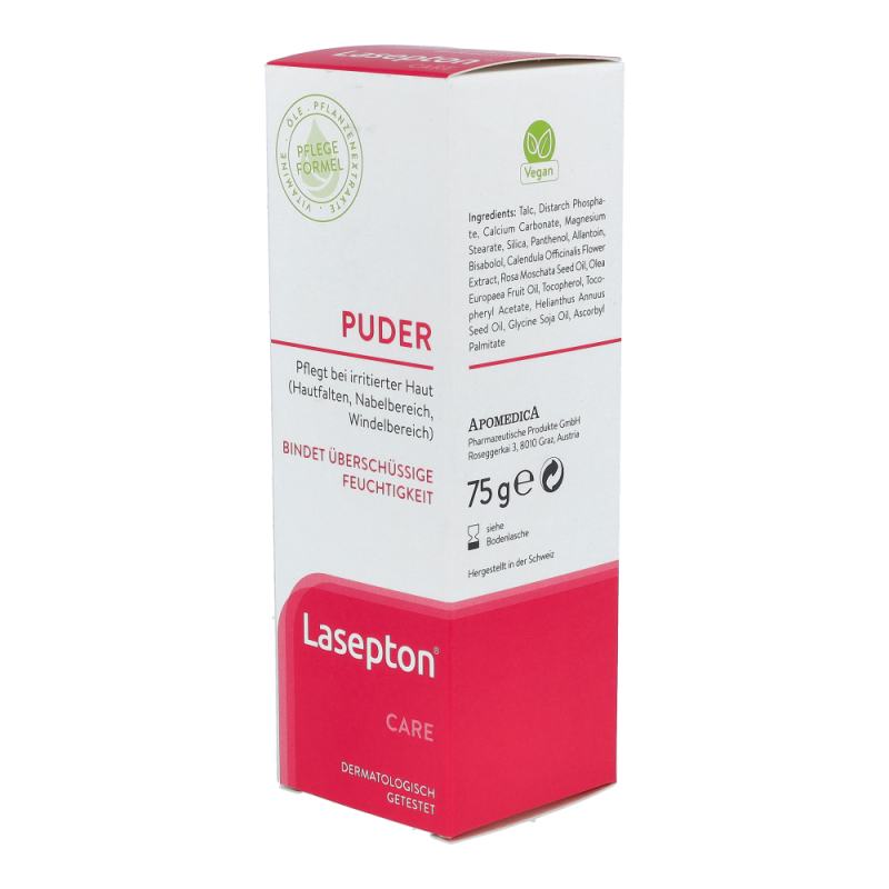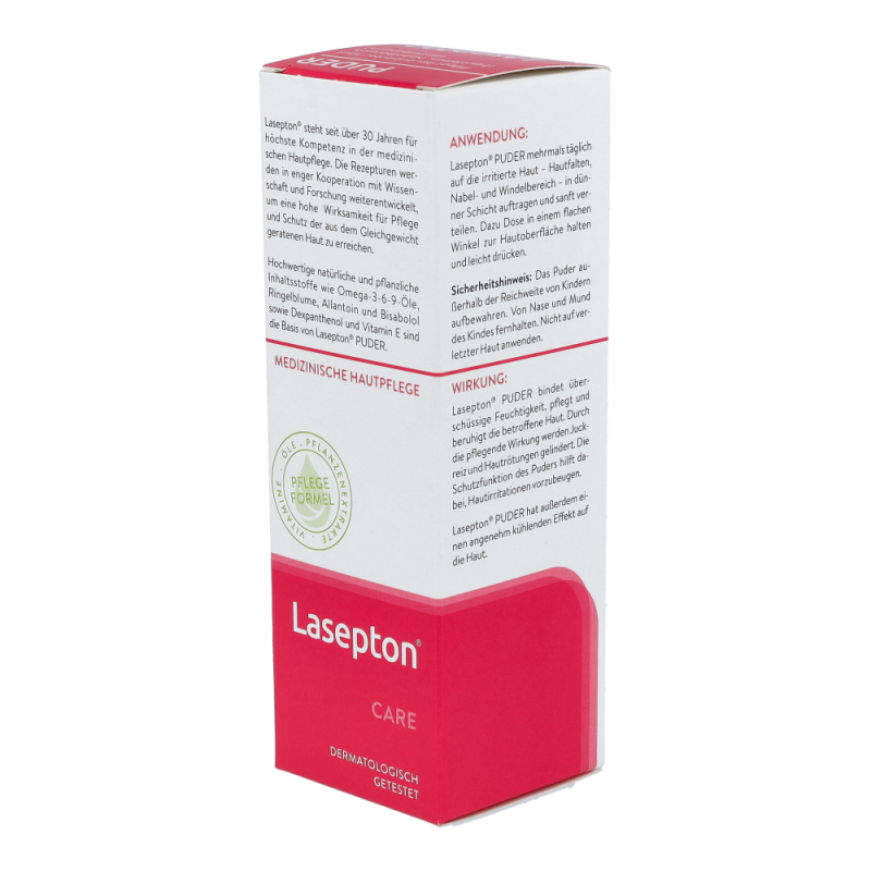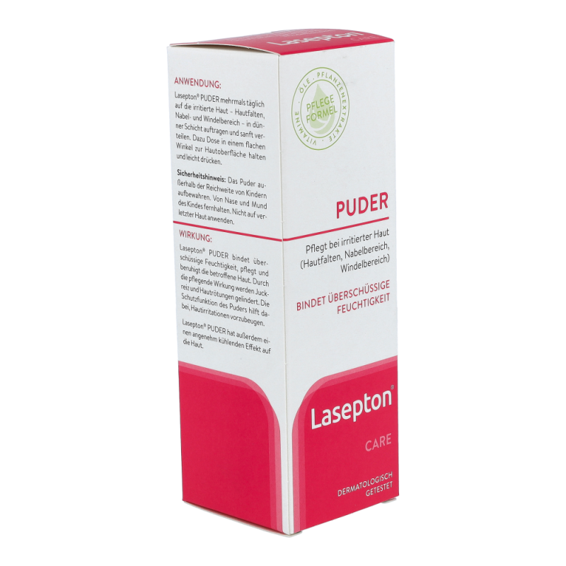 Lasepton® Puder bindet überschüssige Feuchtigkeit, pflegt und beruhigt die betroffene Haut. Ideal bei Juckreiz und Hautrötungen. Das Puder unterstützt dabei, Hautirritationen vorzubeugen und hat einen angenehm kühlenden Effekt auf die Haut.– jetzt mit Kauf auf Rechnung bestellen, 100% Zufriedenheitsgarantie!