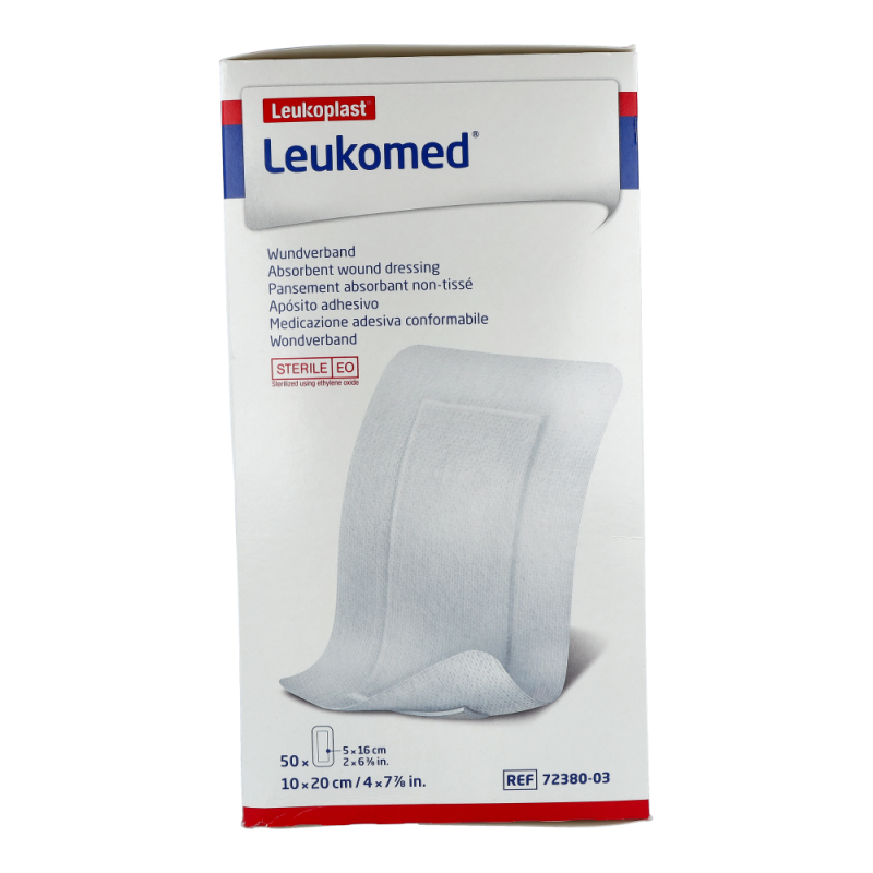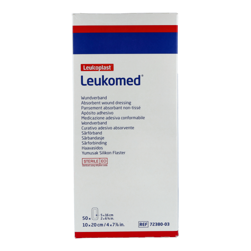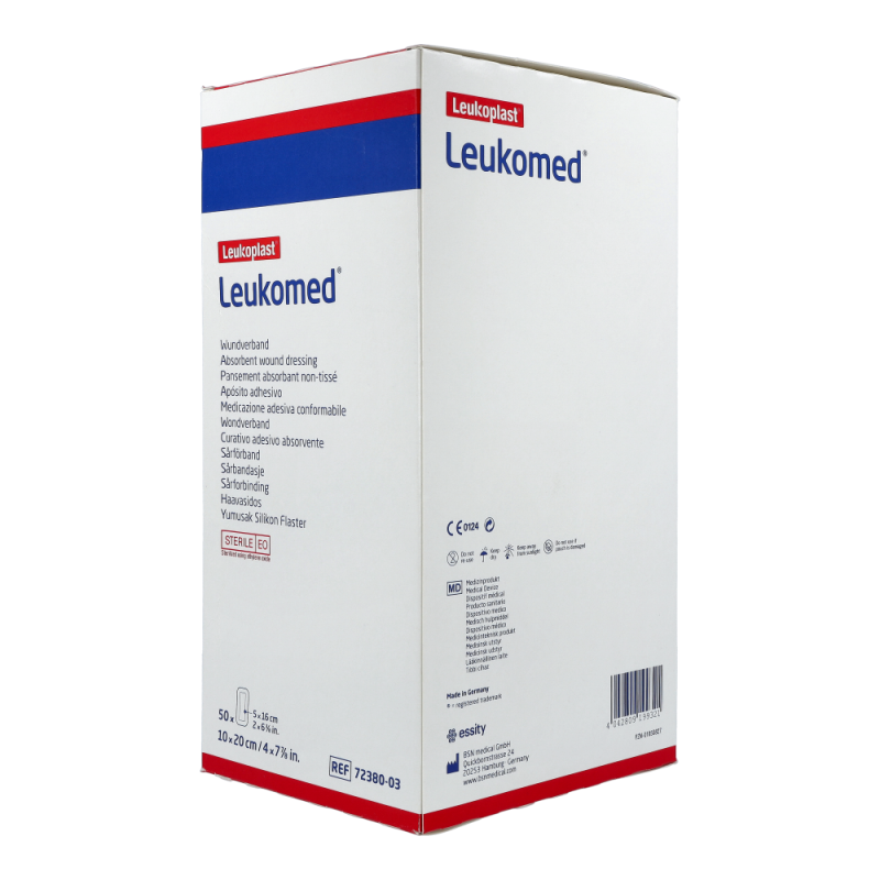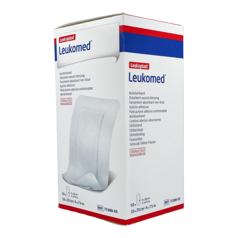 Leukomed Wundverband steril ist aus querelastischem, anschmiegsamem Polyestervlies und passt sich daher auch stark konturierten Körperpartien sehr gut an. Durch die Wundauflauge aus Viskosevlies wird dem Verkleben mit der Wunde vorgebeugt und ein schmerzarmer Verbandwechsel ermöglicht. Leukomed ist luft- und wasserdampfdurchlässig, was das Risiko von Hautmazerationen reduziert.