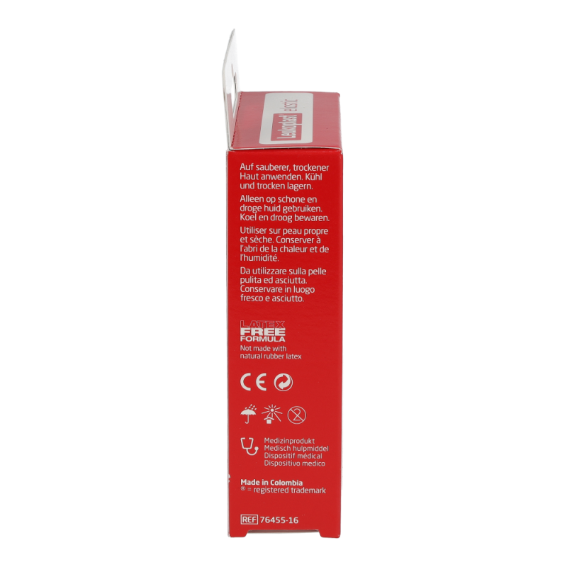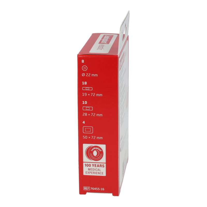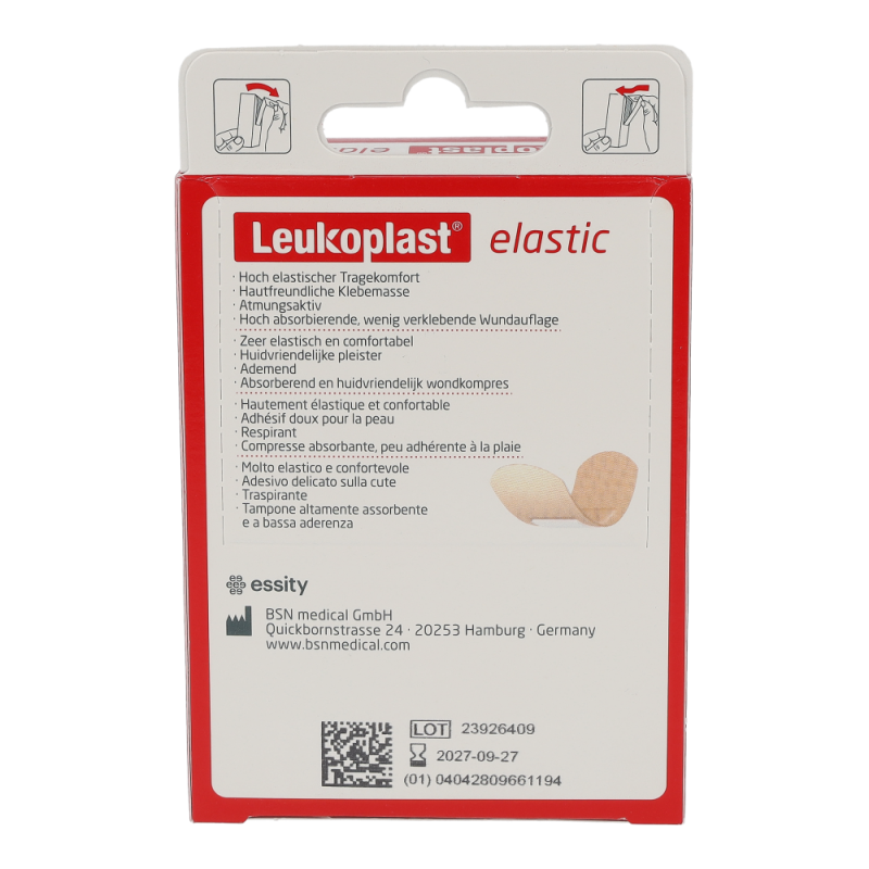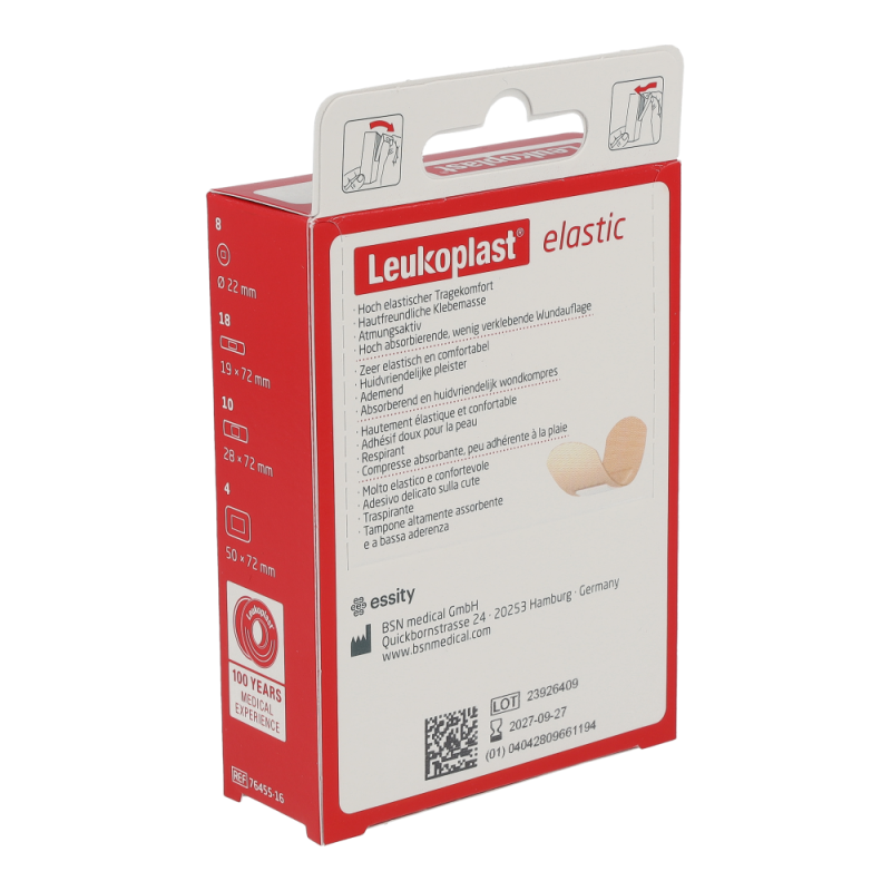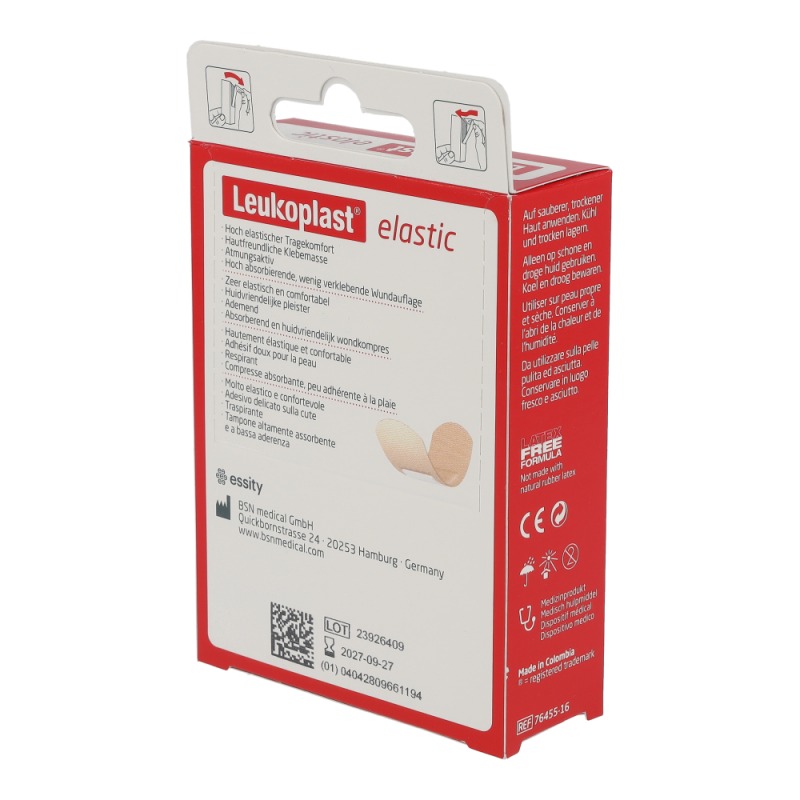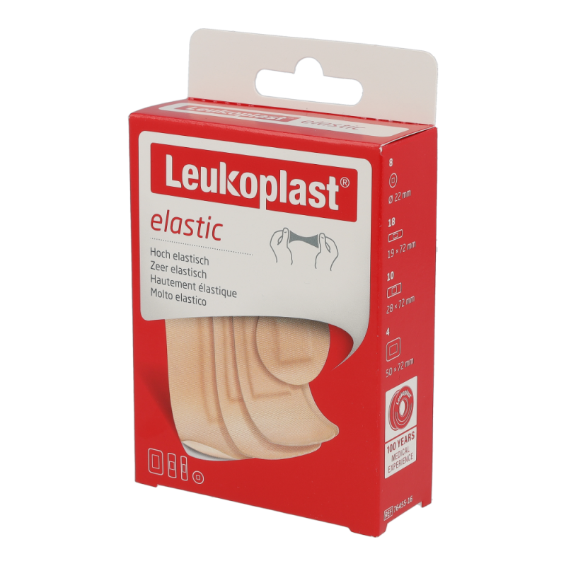Leukoplast Elastic Strip ist besonders flexibel, elastisch und bequem. Es klebt sogar oben auf Gelenken, Fingern und anderen Körperteilen, die Sie viel bewegen. Zuverlässige Haftfestigkeit sorgt auch bei starker Schweißbildung dafür, dass das Pflaster klebt.