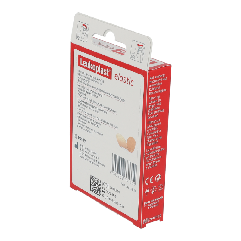Leukoplast Elastic Strip ist besonders flexibel, elastisch und bequem. Es klebt sogar oben auf Gelenken, Fingern und anderen Körperteilen, die Sie viel bewegen. Zuverlässige Haftfestigkeit sorgt auch bei starker Schweißbildung dafür, dass das Pflaster klebt.
