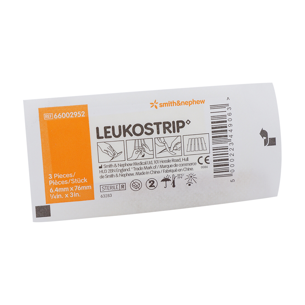 Leukostrip ist ein Wundnahtstreifen mit programmierter Rückstellkraft. LEUKOSTRIP Wundnahtstreifen bestehen aus 100% Polyamid-Gewebe und sind mit einem besonders hautfreundlichen Kleber versehen, der dennoch eine sichere Adaption der Wundränder gewährleistet. Leukostrip ist auch als äS = skin tone“ also hautfarben erhältlich und hat sich dort bewährt, wo eine möglichst unauffällige Anwendung erwünscht ist.