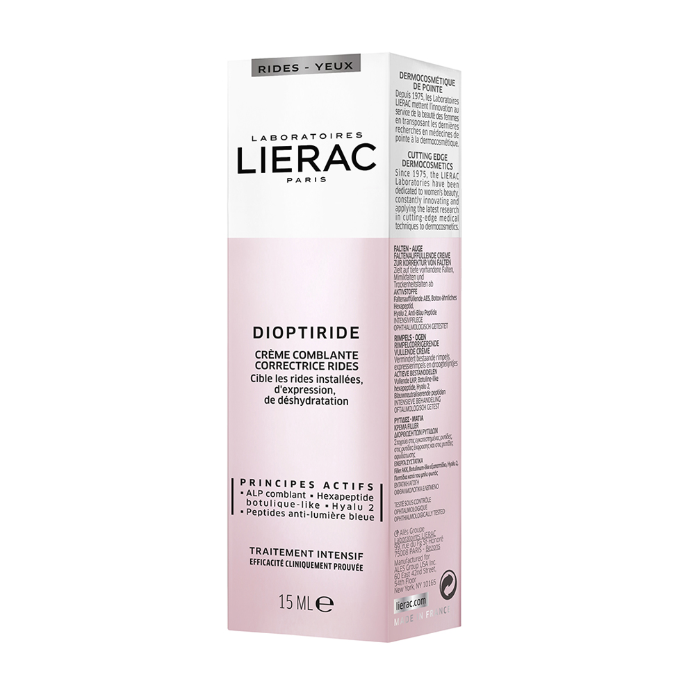 Lierac Dioptiride auffüllende Creme zur Faltenkorrektur 15 ml ist eine Intensivbehandlung gegen Falten mit Peptiden gegen blaues Licht und bekämpft drei Arten von Falten: Trockenheitsfältchen, Mimikfältchen und tiefe Falten. Die reichhaltige Creme hat eine sofort auffüllende Wirkung.