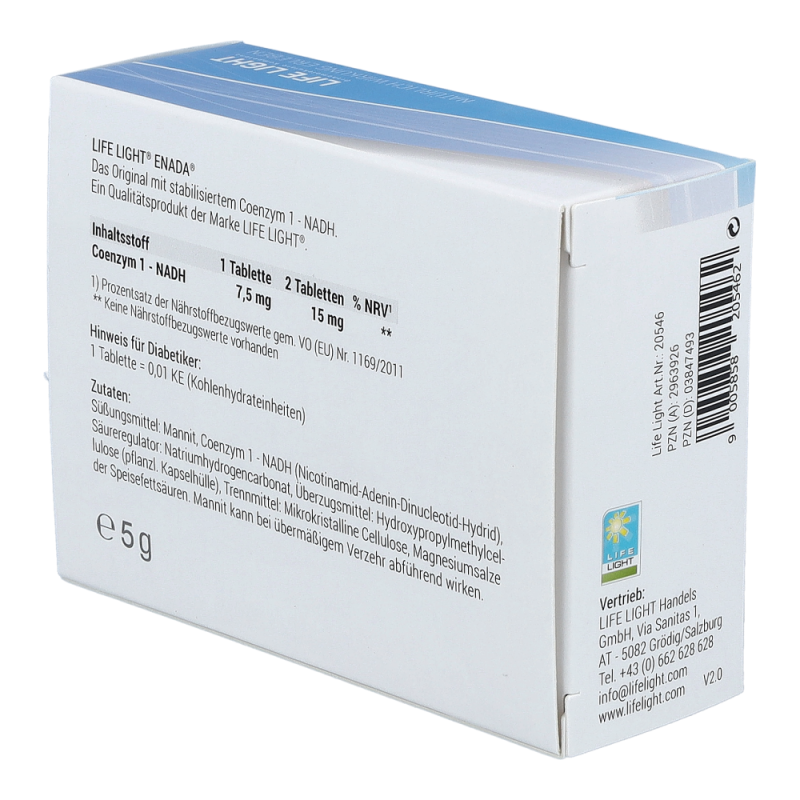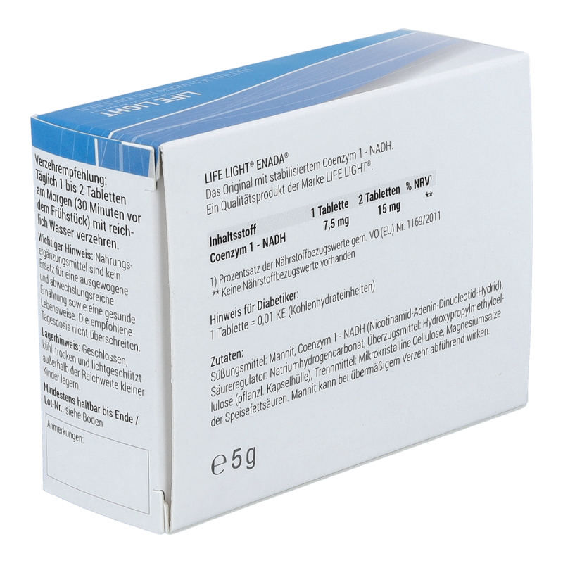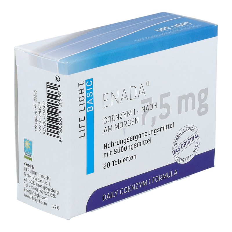 Enada NADH Tabletten sind das erste für den menschlichen Körper zugängliche NADH Präparat. Das Produkt kann zu einem normalen Energiestoffwechsel beitragen: Muskulatur, Herz, Leber und insbesondere das Gehirn sind besonders stoffwechselaktiv.