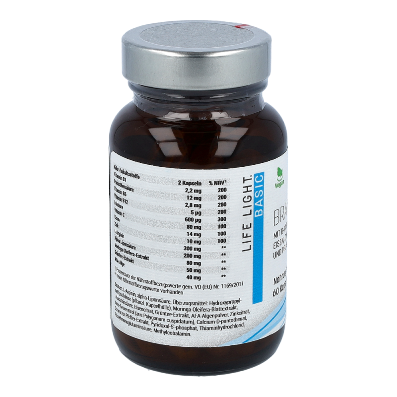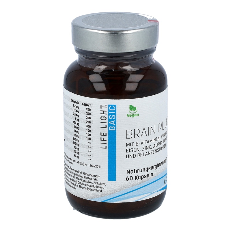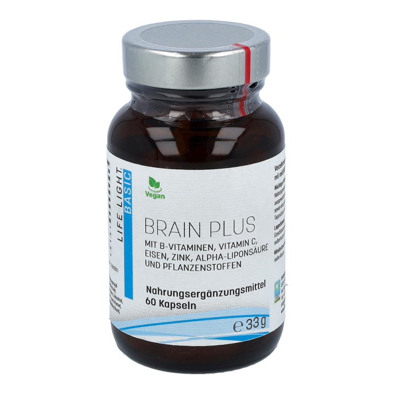 Life Light Kapseln Brain Plus sind ein orthomolekularer Mikronährstoffkomplex mit den Vitaminen B1, B6, B9 und B12 sowie dem Spurenelement Zink, die zu einer normalen psychischen bzw. kognitiven Funktion beitragen. Zink ist ein essentielles Spurenelement und für zahlreiche Prozesse in unserem Körper unentbehrlich. So ist die Abwehrfunktion unseres Körpers vom Zinkhaushalt abhängig.
