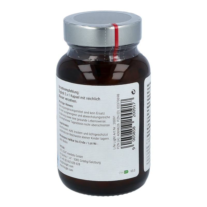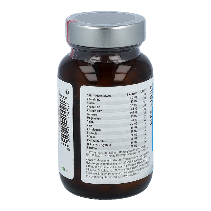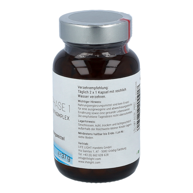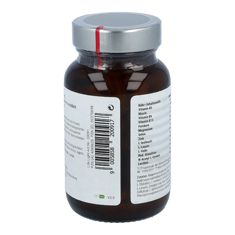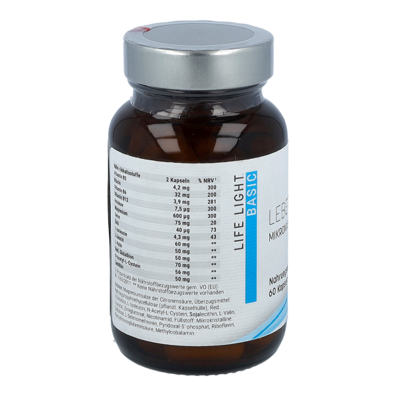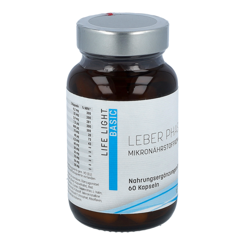 Life Light Leber Phase 1 Mikronährstoffkomplex trägt zu einer normalen DNA-Synthese, einer normalen Fruchtbarkeit und einer normalen Reproduktion bei. Außerdem leistet es einen Beitrag zur Erhaltung normaler Haut, Haare, Nägel und Knochen. Darüber hinaus unterstützt das Produkt die Stoffwechselprozesse von Fettsäuren, Kohlenhydraten, Makronährstoffen und Vitamin A.
