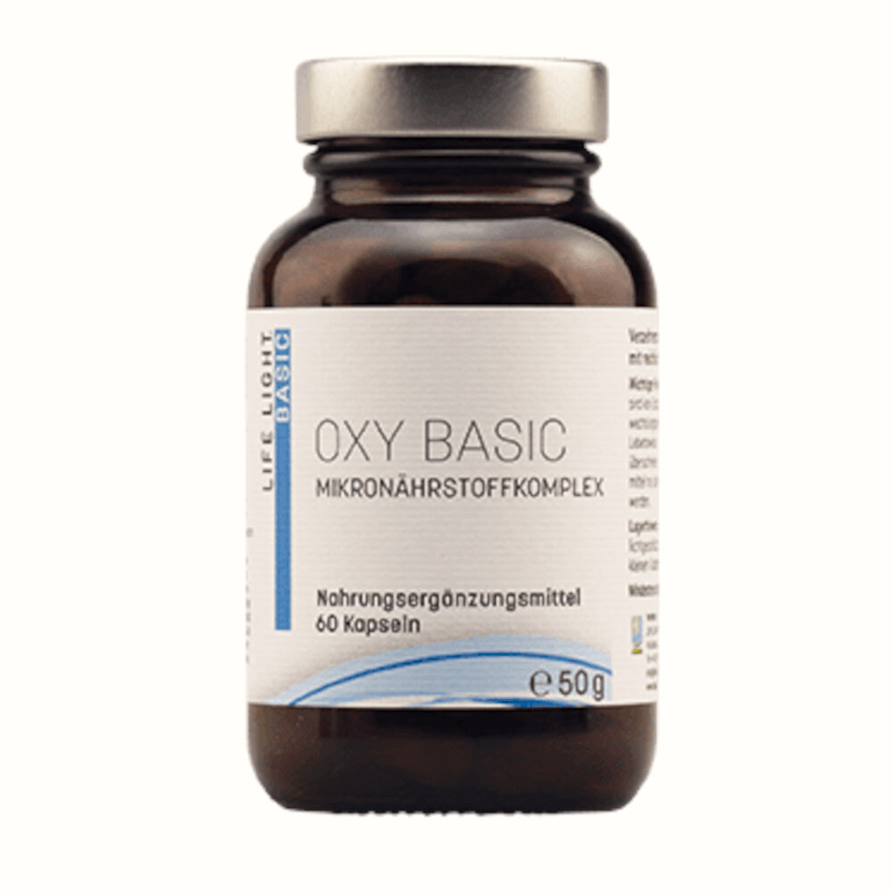 Die Life Light OxyBasic Antioxidantien-Formula Kapseln beinhalteen ideal aufeinander abgestimmte, natürliche, pflanzliche Wirkstoffe und Antioxidantien wie Anthocyane, Polyphenole, Resveratrol und OPC, die bei bestimmten fachärztlichen Therapien unterstützend wirken. Die Präparate sind frei von künstlichen Farb- und Konservierungsstoffen, Gluten und Laktose, werden ohne Gentechnik hergestellt und sind auch für Vegetarier und Veganer geeignet. Nahrungsergänzungsmittel dienen nicht als Ersatz für eine abwechslungsreiche und ausgewogene Ernährung. Sie sind für Kinder unerreichbar aufzubewahren und die empfohlene Tagesdosis darf nicht überschritten werden.
