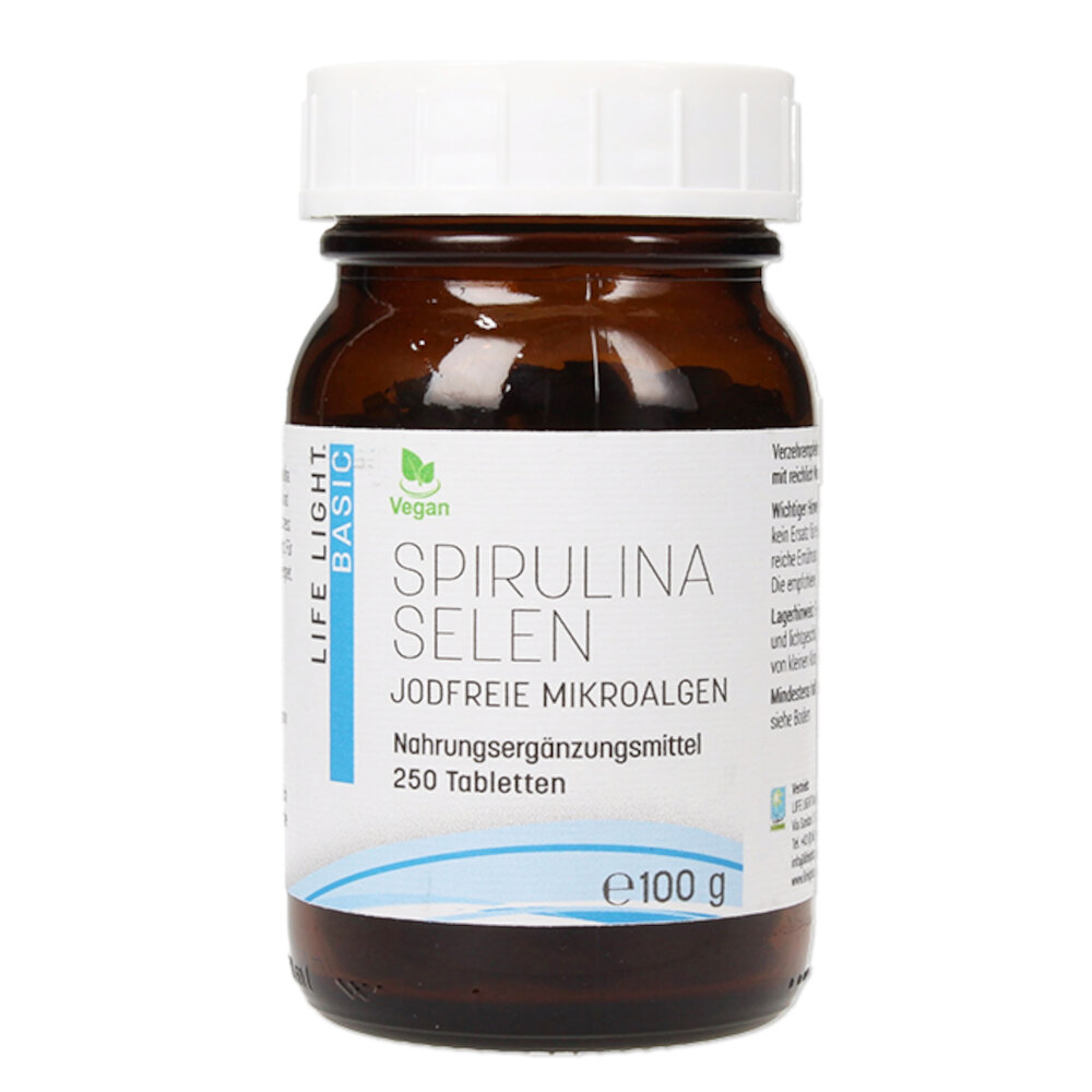 Selen Spirulina Tabletten enthalten hochwertige, jodfreie Süßwasser-Mikroalgen mit organisch gebundenem Chlorophyll und Selen. Selen tägt zum Schutz der Zellen vor oxidativem Stress und zur Funktion der Schilddrüse bei. Vitamin B12 unterstützt Funktion des Immunsystems. Für eine vegetarische und vegane Ernährungsweise geeignet.