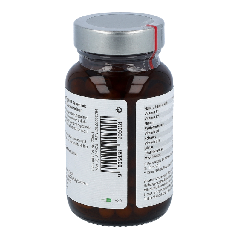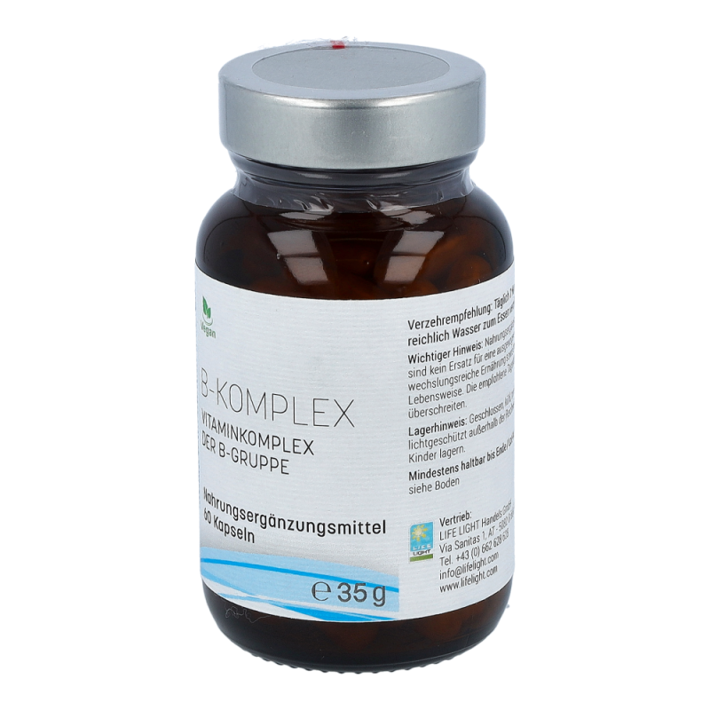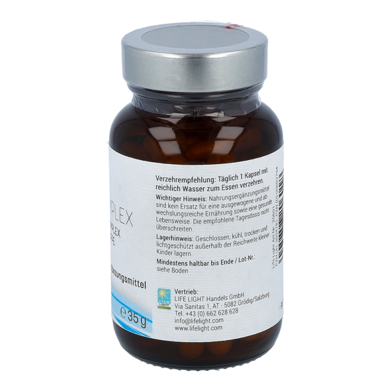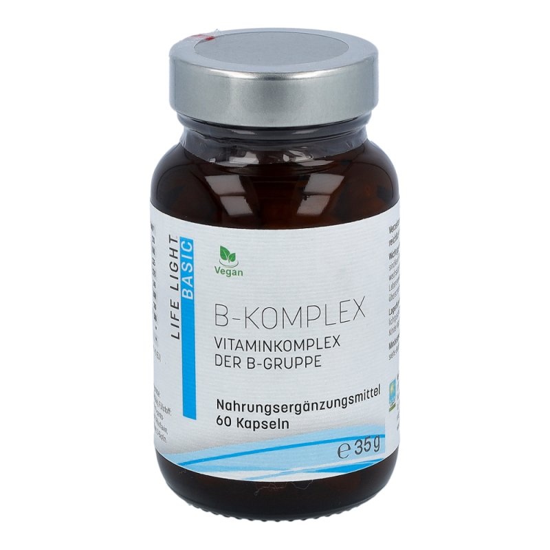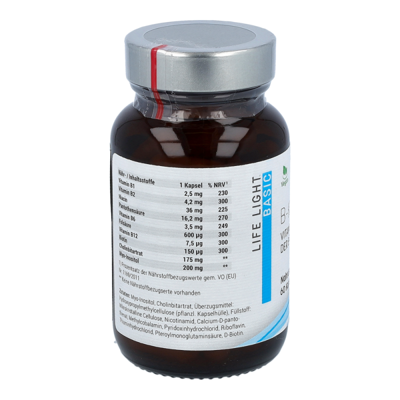 Life Light Vitamin B-Komplex Kapseln sind ein orthomolekularer Mikronährstoffkomplex mit allen B-Vitaminen, die wichtige Stoffwechselfunktionen unterstützen. Die Kapseln tragen darüber hinaus zu einer normalen Funktion des Nervensystems und einer Reduktion von Müdigkeit und Ermüdung bei.