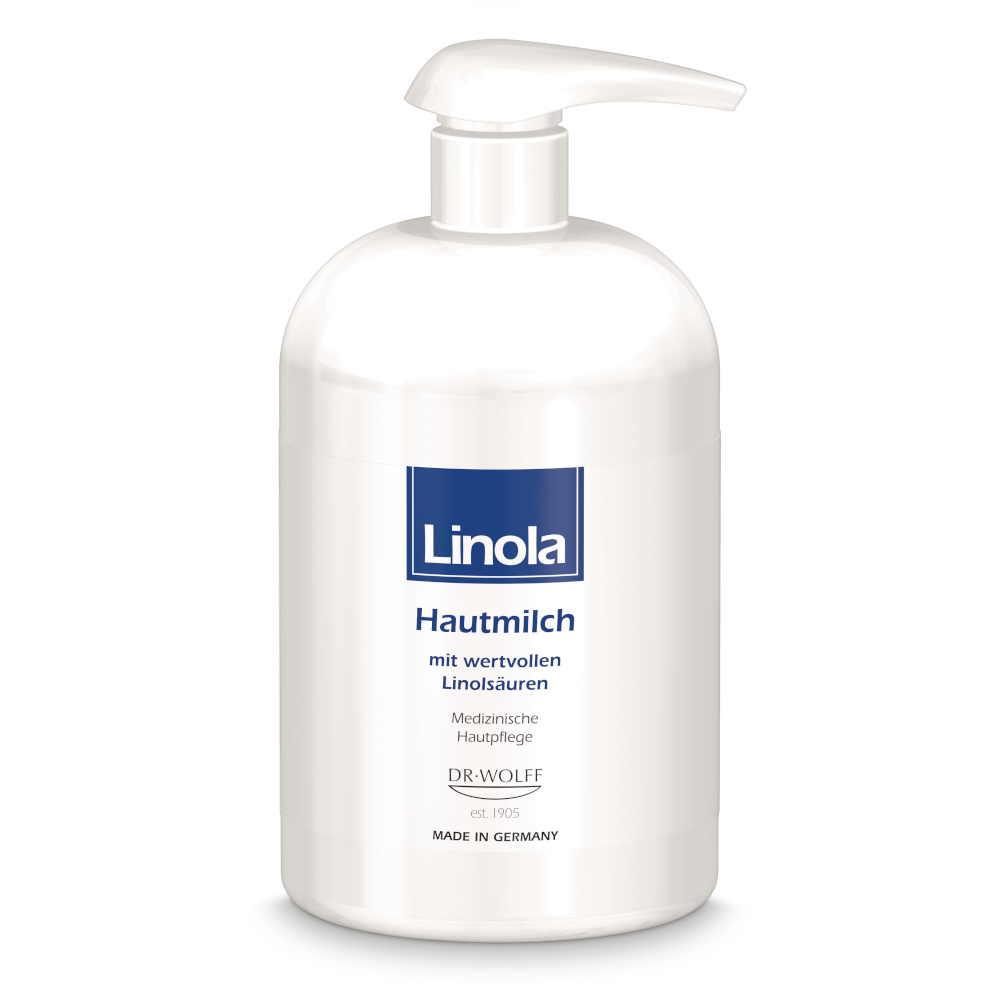 Die Linola Hautmilch enthält wertvolles Distelöl und ist reich an Linolsäuren. Diese spezielle Fettsäure ist für die Barriere der gesunden Haut unbedingt notwendig. Linolsäure kann der Körper jedoch nicht selbst herstellen, sie muss wie ein Vitamin regelmäßig zugefügt werden, damit auch die Haut gesund bleibt. Die Körperlotion hilft dabei, die schützende Barrierefunktion der Haut wiederherzustellen. Zudem bildet Linola Hautmilch einen leichten Film um die Hornzellen, der die Haut vor weiterer Austrocknung schützt und zugleich das vorhandene Fett- und Feuchtigkeitsdefizit normalisiert. Die Wasser-in-Öl-Emulsion mit einem Fettgehalt von 35% ist eine geschmeidige Lotion und zieht schnell in die Haut ein. So fühlt sich die Haut wieder glatt und geschmeidig an.