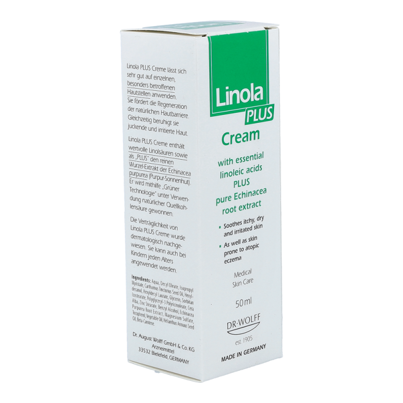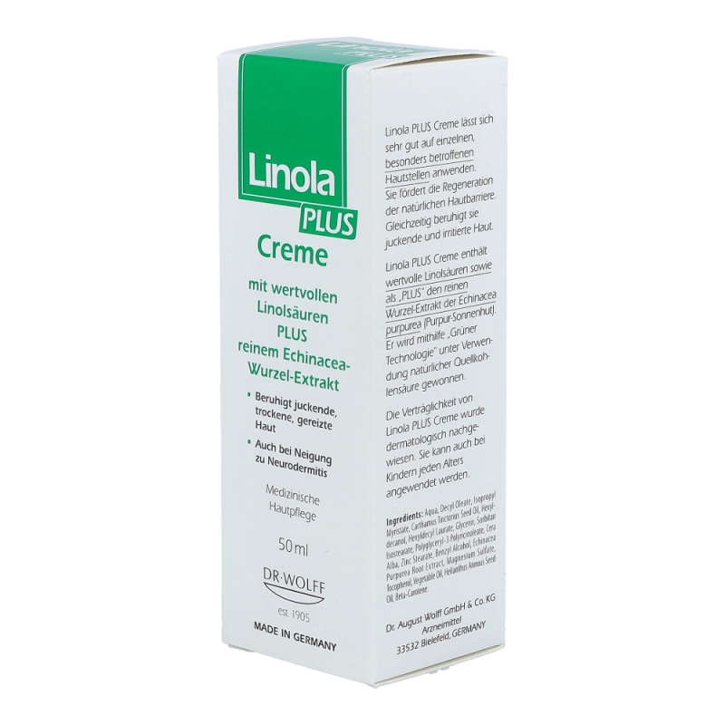 Linola PLUS Creme zeichnet sich durch ihre einzigartige Formulierung aus wertvollem Linolsäurereichen Distelöl sowie einem besonderen Pflanzenextrakt aus der Wurzel der Echinacea purpurea (Purpur-Sonnenhut) aus. Traditionell wurden und werden Extrakte aus Echinacea purpurea wegen ihrer gesundheitsfördernden Eigenschaften bei verschiedensten Hautproblemen eingesetzt.