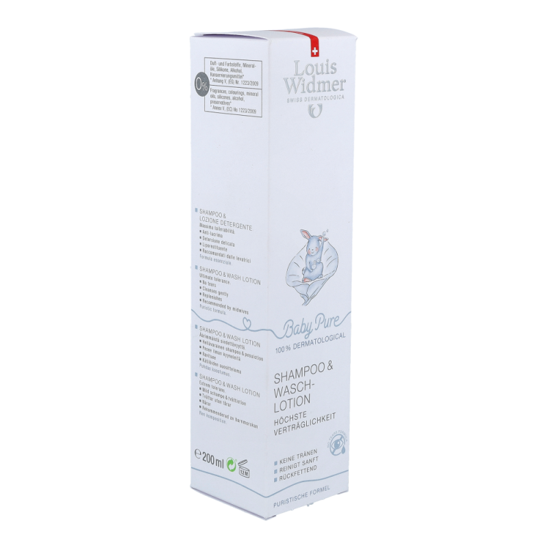 BabyPure Shampoo und Waschlotion ist speziell fü r die feinen Haare und die besonders empfindliche Babyhaut entwickelt worden. Die puristische Formulierung ist mikrobiologisch und dermatologisch getestet und zeigt hö chste Verträ glichkeit. BabyPure Shampoo und Waschlotion ist frei von Duft- und Farbstoffen, Mineralö