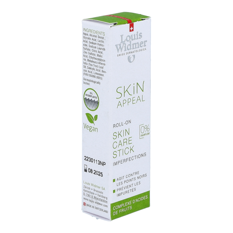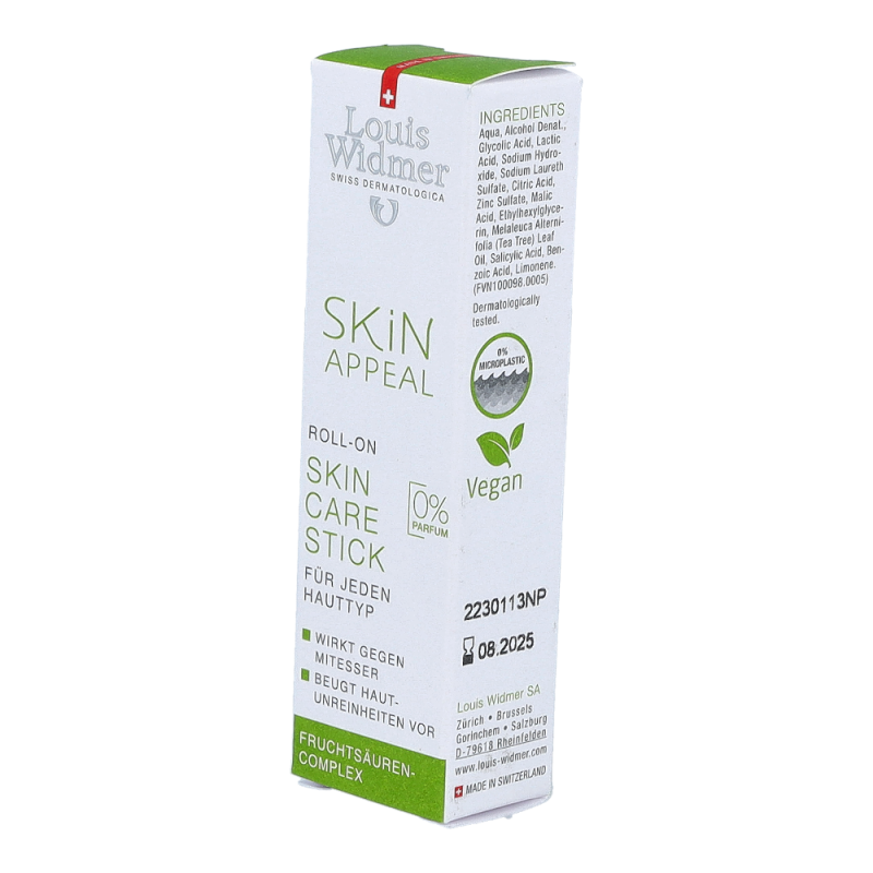 Louis Widmer® Skin Appeal Skin Care Stick ist eine leicht desinfizierende Lotion gegen Pickel, Mitesser und unreine Haut. Widmer Skin Care Stick ist eine leicht desinfizierende Lotion gegen Pickel, Mitesser und unreine Haut. Mit AHA und Teebaumö l. Eignet sich fü r die punktuelle Behandlung von Mitessern &ndash