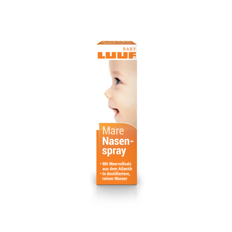 „Für Säuglinge und Kleinkinder bis zum 6. Lebensjahr Gerade bei Babys ist es wichtig, die eingeschränkte Atmung bei einer verstopften Nase schnell zu erleichtern. Baby LUUF® Mare Nasenspray ist eine natürliche Hilfe aus dem Meer und wurde speziell für Säuglinge und Kleinkinder bis zum 6. Lebensjahr entwickelt. Um die zarte Babynase zu schonen, ist das Sprühvolumen entsprechend sanfter als bei LUUF® Mare Nasenspray. „