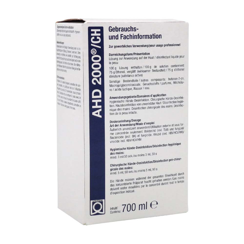 Lysoform AHD 2000 H/h wird zur Desinfektion von unverletzter Haut und den Händen eingesetzt und hat ein breites Wirkungsspektrum gegen Bakterien, Pilze oder Viren. Die Lösung ist auch bei häufiger Anwendung gut hautverträglich.