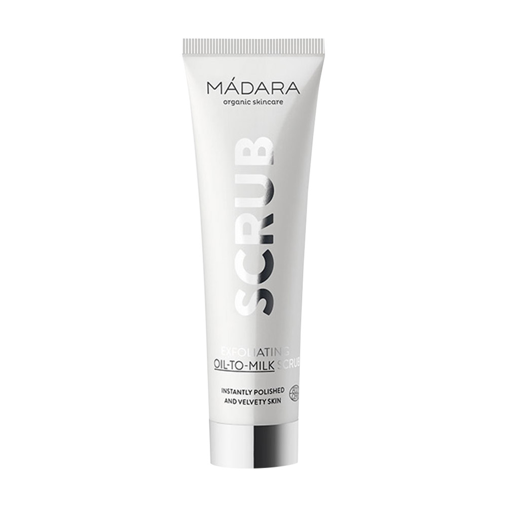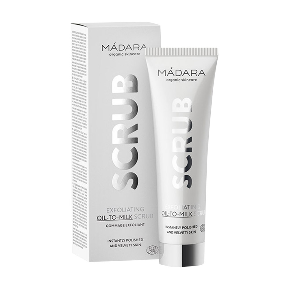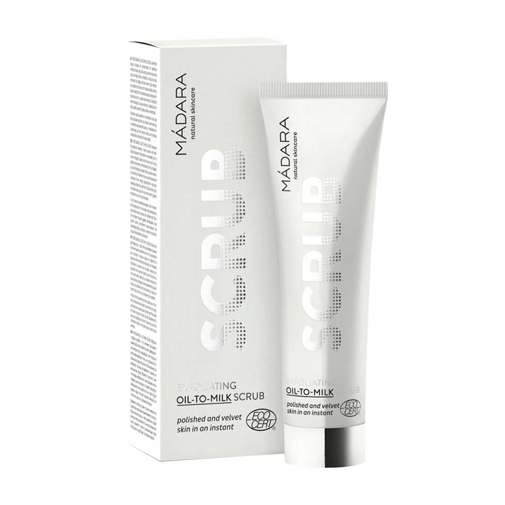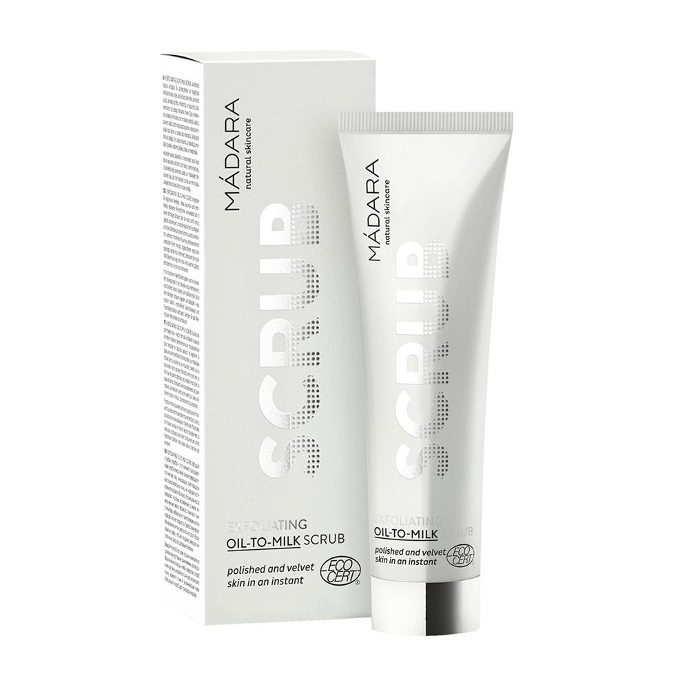 Madara Exfoliating Scrub Oil-To-Milk ist ein luxuriöses und Öl-basiertes Peeling, das sich bei der Anwendung verwandelt und eine zarte Milchtextur annimmt. Das Peeling reinigt sanft und macht die Haut wunderbar weich und geschmeidig. Die Haut wird dazu angeregt sich auf natürliche Weise selbst zu erneuern. Aprikose und Hafer-Öl binden Schmutz und Unreinheiten, während natürliche und sanfte Mikrokügelchen verstopfte Poren säubern und öffnen, abgestorbene Hautzellen entfernen und die Haut zum Strahlen bringen.