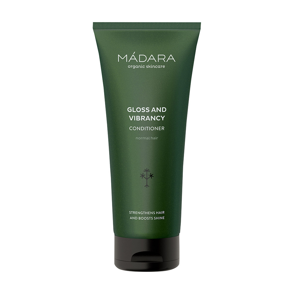 Madara Gloss and Vibrancy Conditioner verleiht dem Haar mehr Volumen und Glanz. Es pflegt, stärkt und beruhigt die Kopfhaut und hilft gegen trockene Haarspitzen und entwirrt das Haar. Das Haar wird kräftiger und seidig weicher.