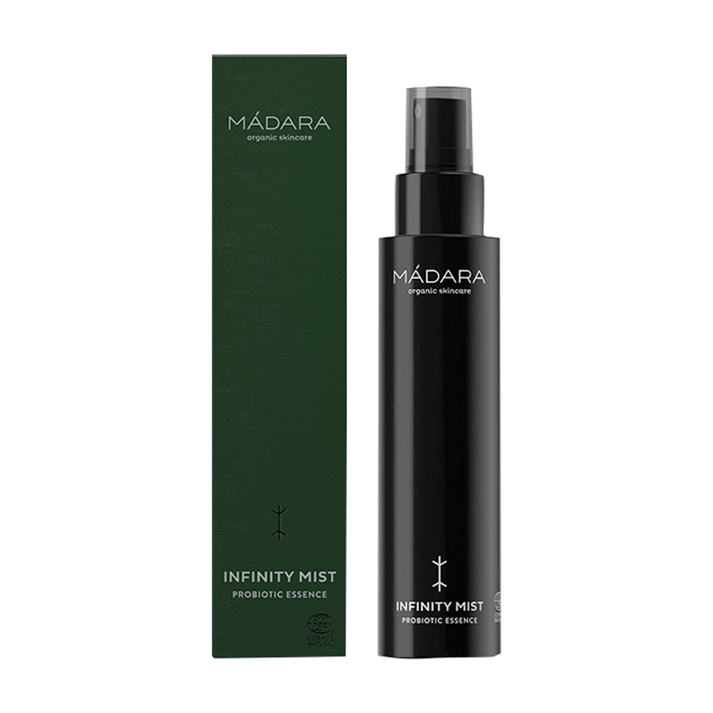 Im Laufe von Tausenden von Jahren haben sich im rauen nordischen Klima Pflanzen mit außergewöhnlichen Eigenschaften entwickelt. Diese tiefen Wurzeln, bitteren Blätter und knorrigen Rinden haben Wunden geheilt und Leben gerettet. Eingefangen in dieser probiotischen Essenz, fällt ihre zeitlose Weisheit wie durstlöschender Nebel auf Ihre Haut, um die Hydratation, das Wohlbefinden und den Schutz zu verbessern und Ihren Teint zum taufrischen, unendlichen Strahlen zu bringen. Mit wasserbindenden Pflanzenzuckern und Hyaluronsäure erneuert dieses leichte, jedoch wirksame Gesichtswasser die Feuchtigkeit in der Haut und verbessert so auch deren Wohlbefinden und Schutz. Probiotischer Lactobacillus-Stamm normalisiert das Mikrobiom der Haut, schützt ihre Feuchtigkeitsbarriere und verhindert transepidermalen Wasserverlust, während die in der Fabrik von MÁDARA entwickelten Polyphenole die umweltbedingten Aggressoren abwehren. Ihre Haut wird sofort erfrischt, beruhigt und ist strahlender. Für alle Hauttypen und alle Altersg ruppen geeignet. Auf das saubere Gesicht und Dekolleté morgens und tagsüber aufsprühen. Verlassen Sie sich auf den Sprühnebel als Ihren täglichen Begleiter und Retter, der für das Beruhigen, Wohlbefinden, Ausgleichen und Befeuchten Ihrer Haut sorgt. Für eine ultimative Stärkung der Abwehrkraft zusammen mit Infinity Drops Immuno-Serum anwenden.
