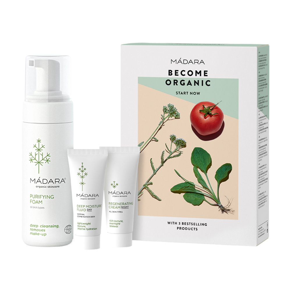 Madara Starter Set Become Organic enthält drei zauberhafte Pflegeprodukte für einen strahlenden Teint. Das Set enthält Purifying Foam (150ml), Deep Moisture Fluid und die Regenerating Night Cream (jeweils 25ml) – jetzt Produkte von Madara mit hohem Rabatt bestellen!