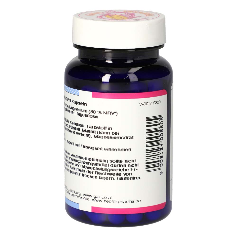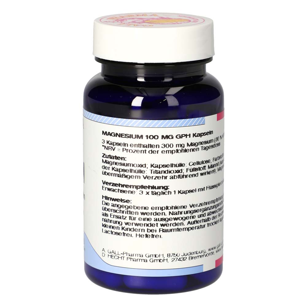 Magnesium 100mg GPH Kapseln unterstützen den Aufbau von Zähnen und Knochen, die Leitung von Nervenimpulsen auf die Muskulatur, die Sauerstoffversorgung der Zellen, das Immunsystem und die Blutgerinnung. Magnesium trägt außerdem zur Verringerung von Müdigkeit und Ermüdung bei. erhalten Sie dieses Produkt in Packungen zu 60 und 180 Stück.