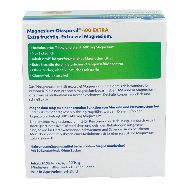 Magnesium Diasporal 400 Extra Trinkgranulat vitalisiert Muskel und ist ideal für den erhöhten Magnesiumbedarf.