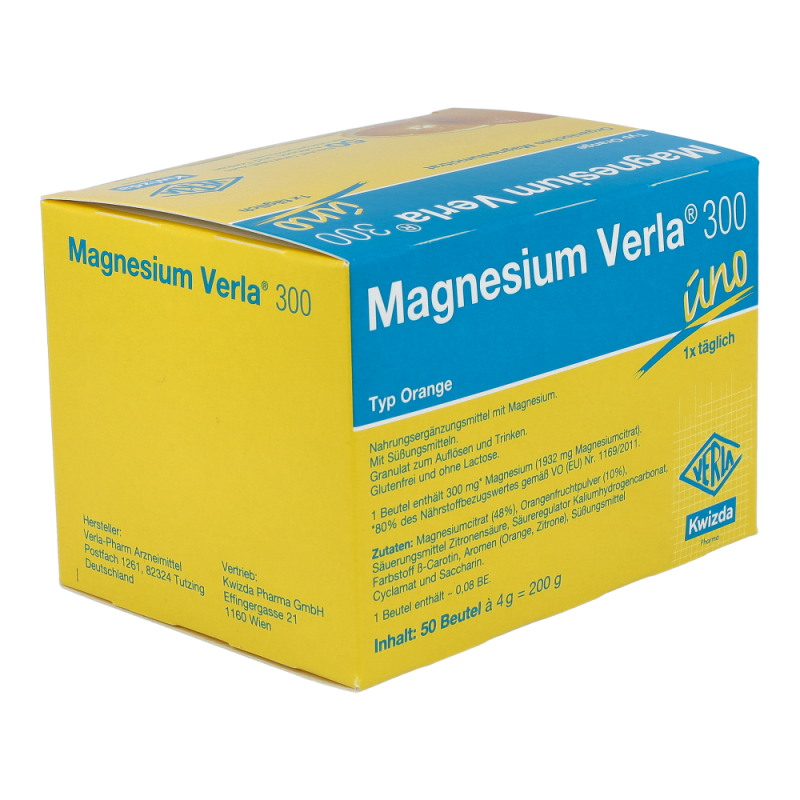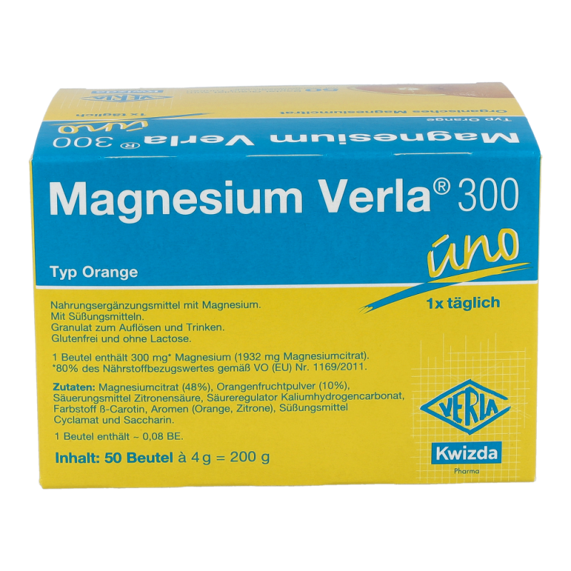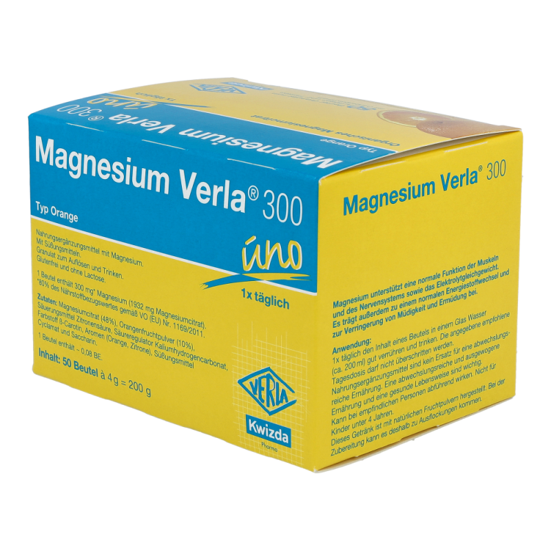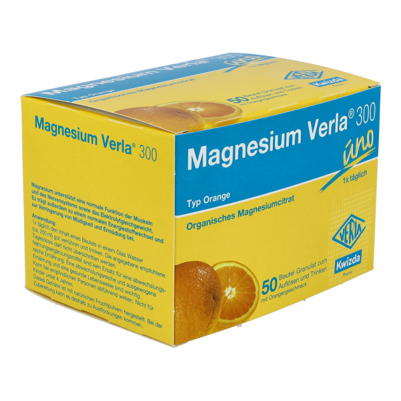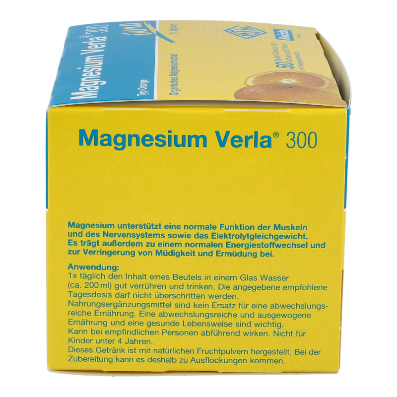 Magnesium Verla 300 ist ein Nahrungsergänzungsmittel und eignet sich ideal zur Deckung eines erhöhten Magnesiumbedarfs. Mit frischem Orangengeschmack..