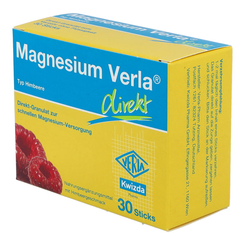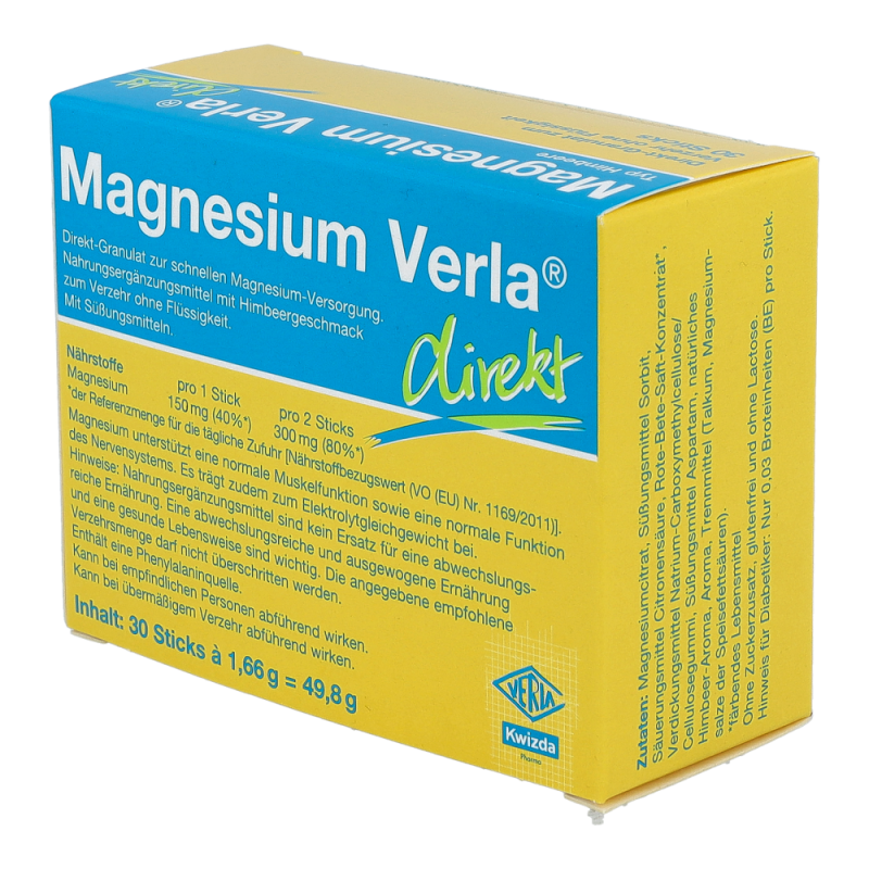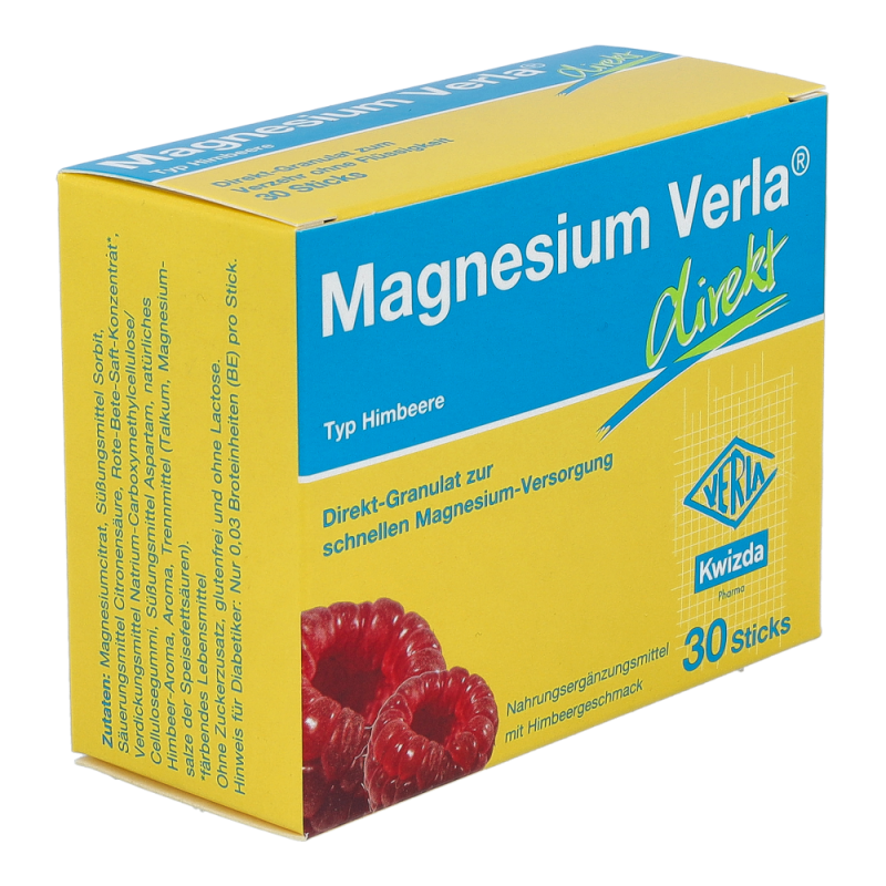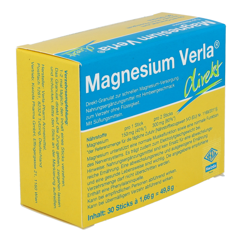 Magnesium Verla direkt Stick ist optimal zur schnellen Versorgung mit Magnesium. Durch die praktischen Sticks ist die Einnahme auch unterwegs möglich. Beugt Wadenkrämpfe, Muskelkrämpfe und Muskelverspannungen vor – bestellen Sie jetzt dort, wo Sie sicher sind!