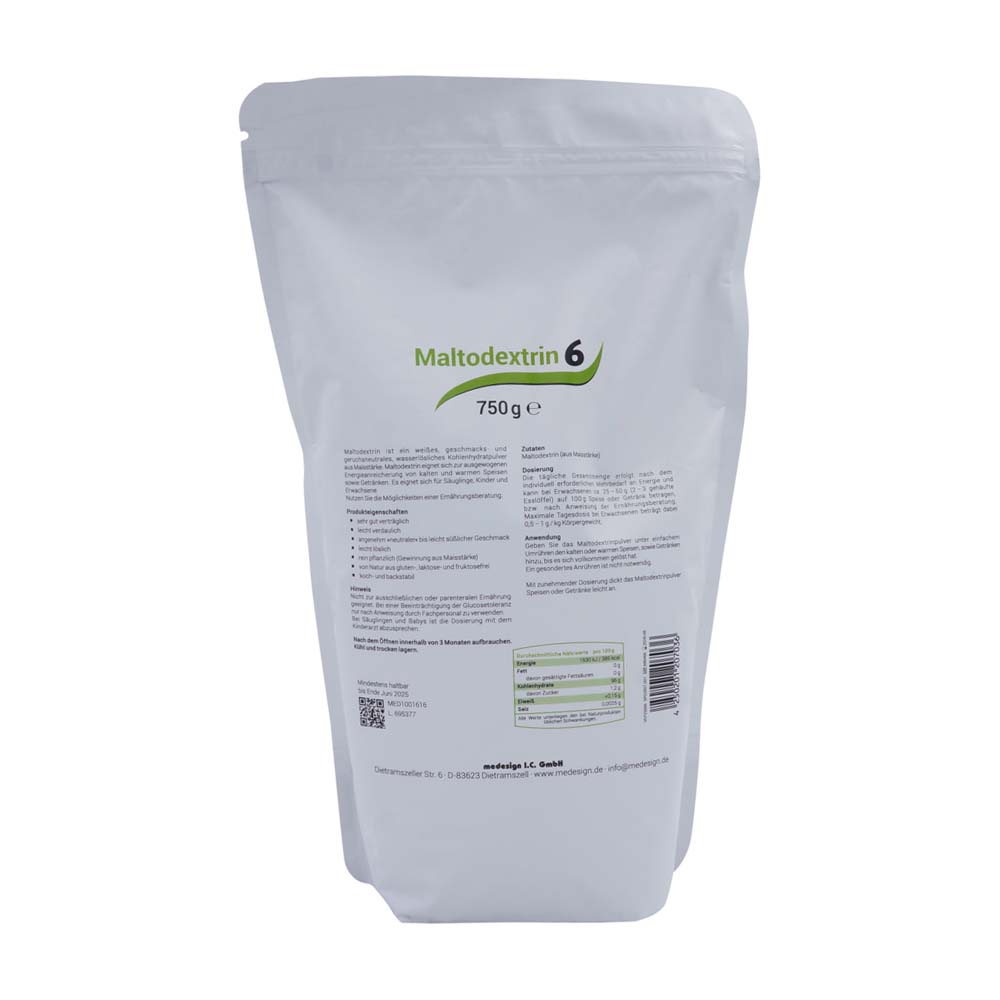 medesign Maltodextrin ist ein geschmacksneutrales Kohlenhydratpulver, welches zur Kalorien-anreicherung in Getränke und Speisen gemischt wird. Maltodextrin wird vom Körper langsamer resorbiert als beispielsweise Traubenzucker und führt deshalb zu einem geringeren Anstieg des Blutzuckerspiegels.