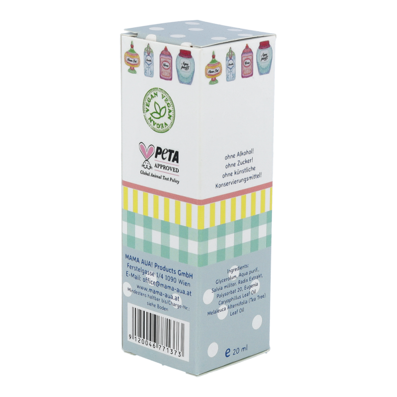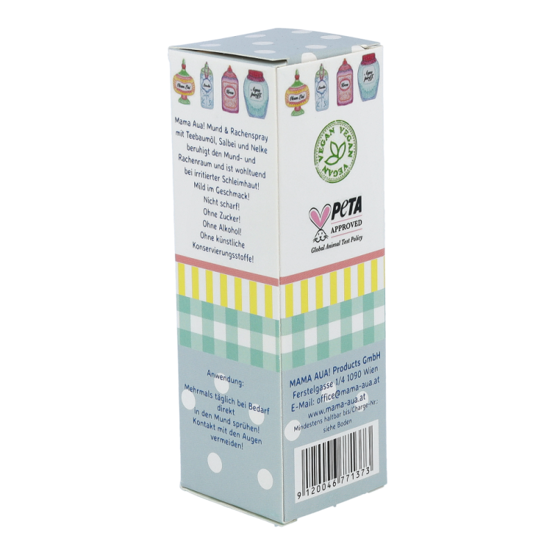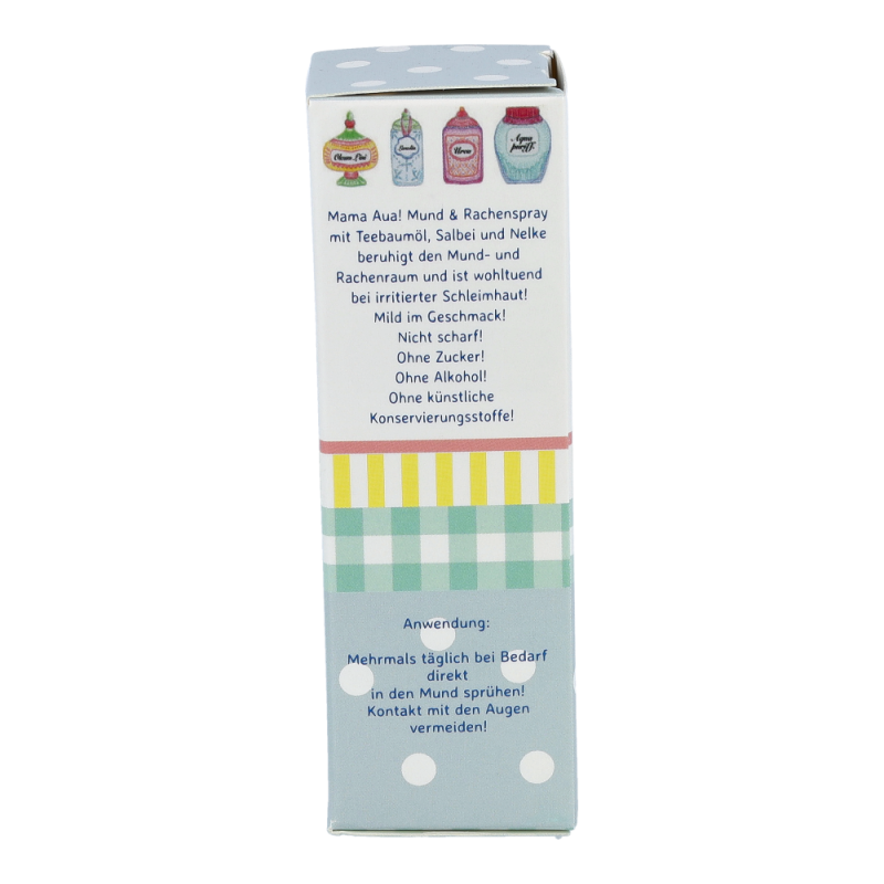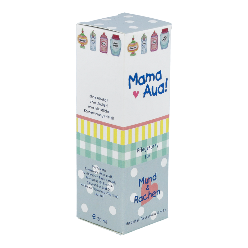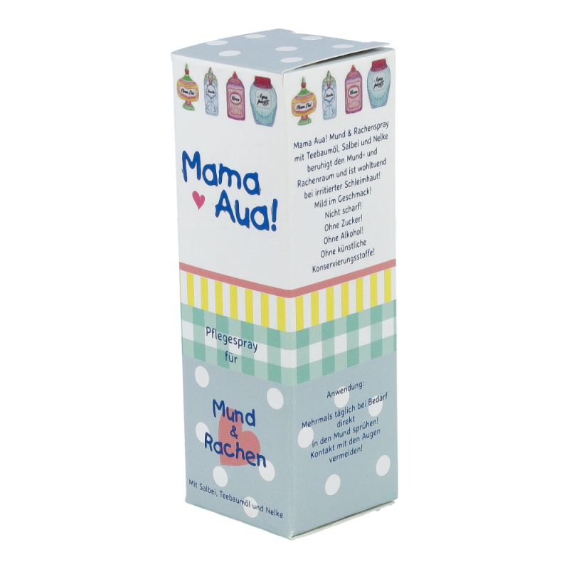 Mama Aua Mund & Rachen Spray ist ein milder, sehr wohlschmeckender Spray, der wohltuend und beruhigend bei der Pflege irritierter Mund- und rachenschleimhaut wirkt.
