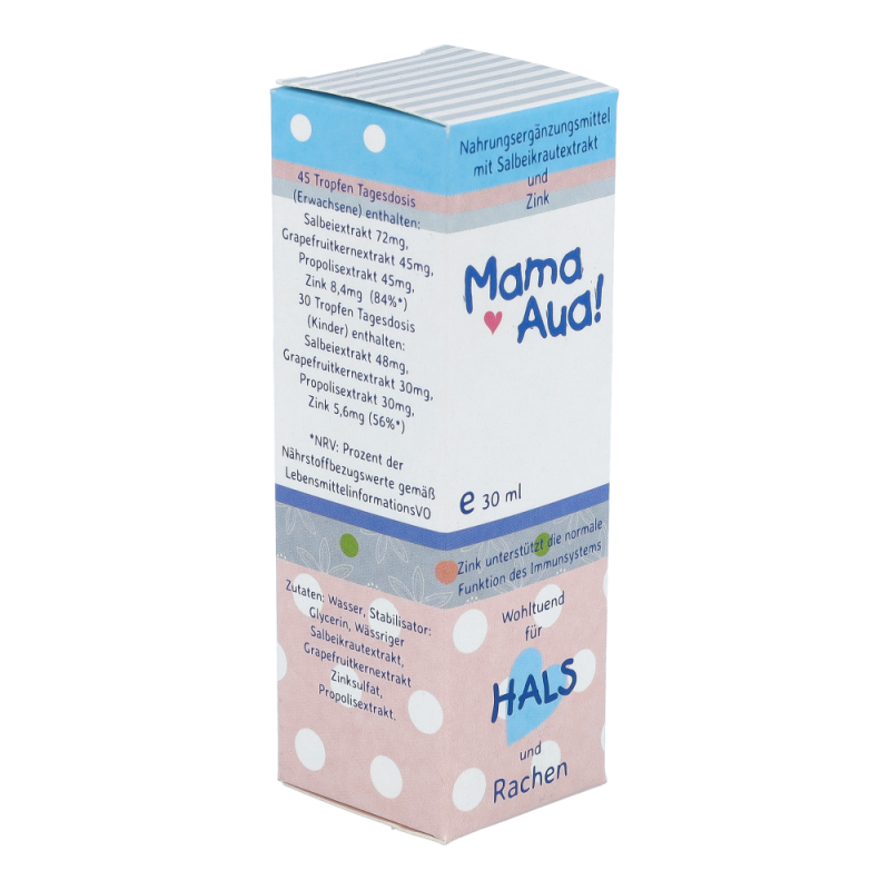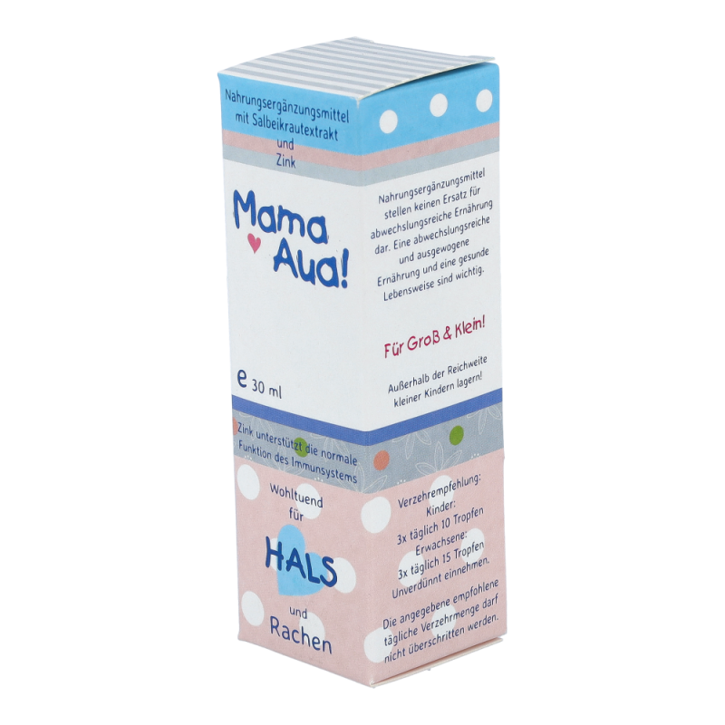 Mama-Aua! Tropfen Hals wirkt wohltuend für Hals und Rachen für die ganze Familie, für Groß und Klein.