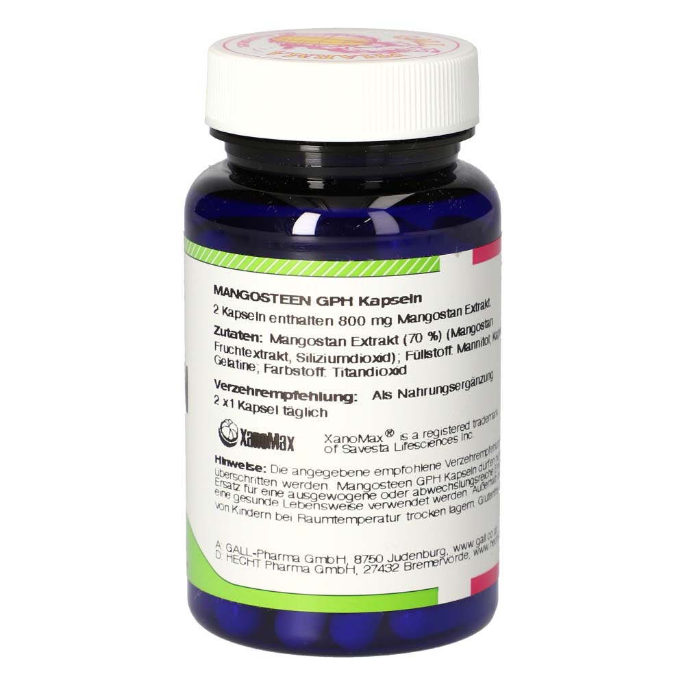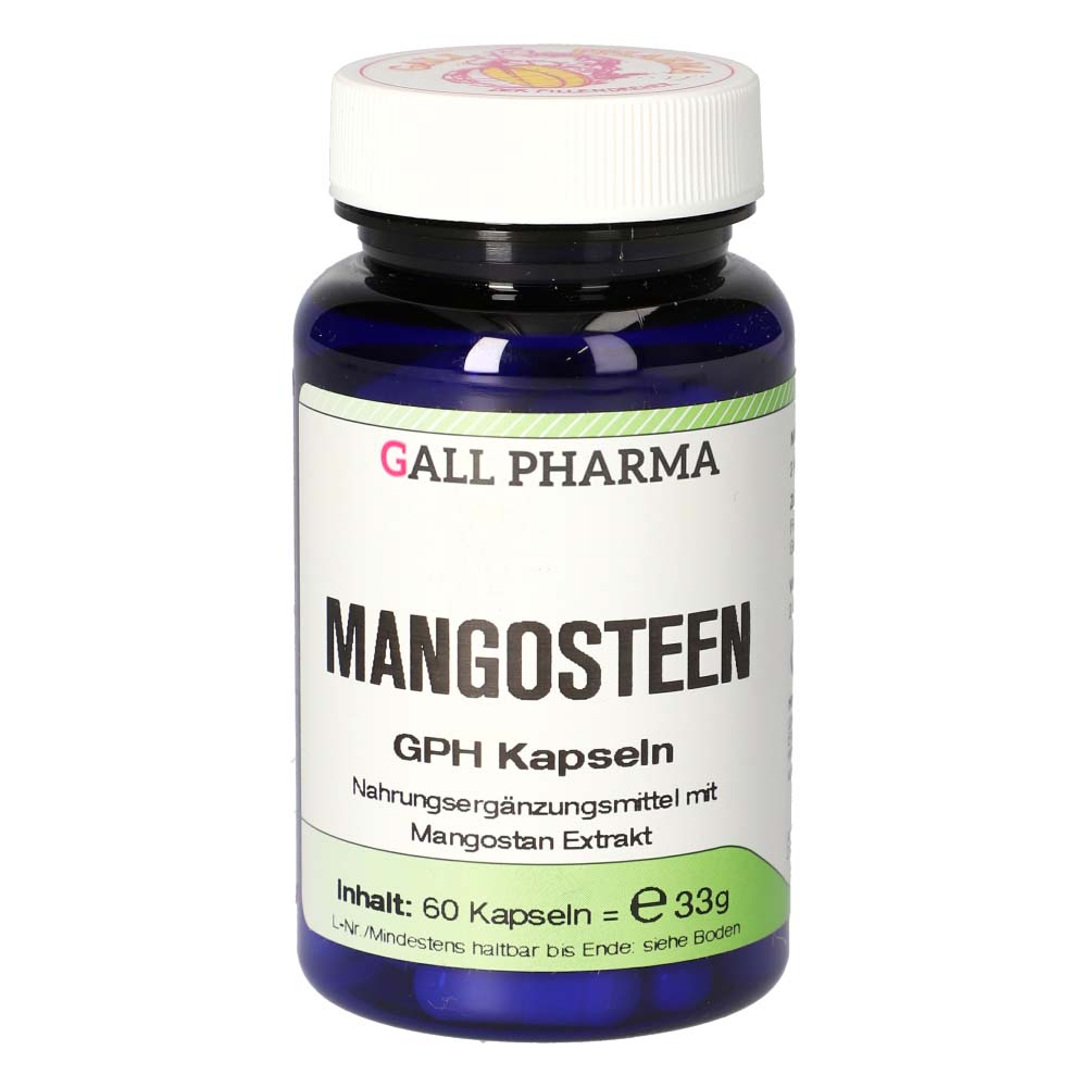 Mangosteen Kapseln GPH enthalten 400 mg Mangostan Fruchtrindenextrakt. Die Mangostanfrucht enthält über 40 Xanthone und zählt zu den reichhaltigsten Quellen natürlicher Xanthone. Weitere Bestandteile sind natürlich vorkommende Mineralien und Spurenelemente, Polyphenole, Catechine, Polysaccharide, Enzyme, Vitamine, und Bioflavonoide. erhalten Sie dieses Produkt in Packungen zu 60 und 120 Stück.