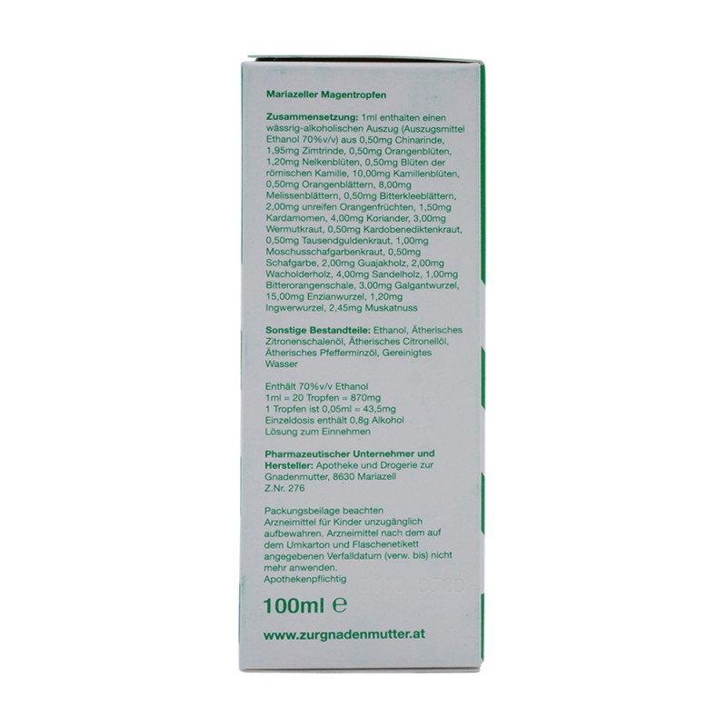 Mariazeller Magentropfen sind ein pflanzliches Arzneimittel zur Anwendung bei leichten Verdauungsstörungen (Völlegefühl, Blähungen) und Appetitlosigkeit. .
